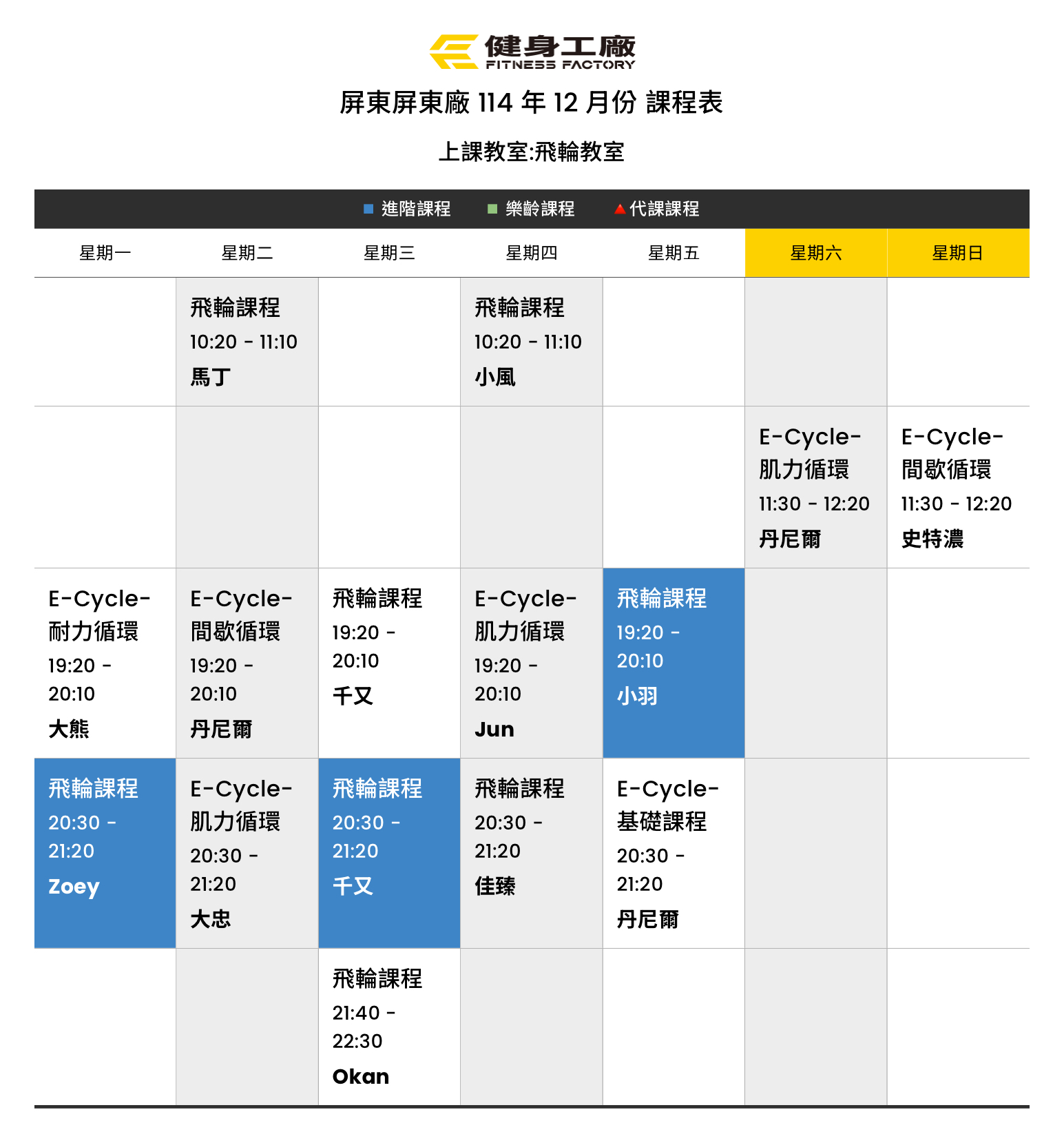 24Nov.2025【課表】屏東廠-12月飛輪課表