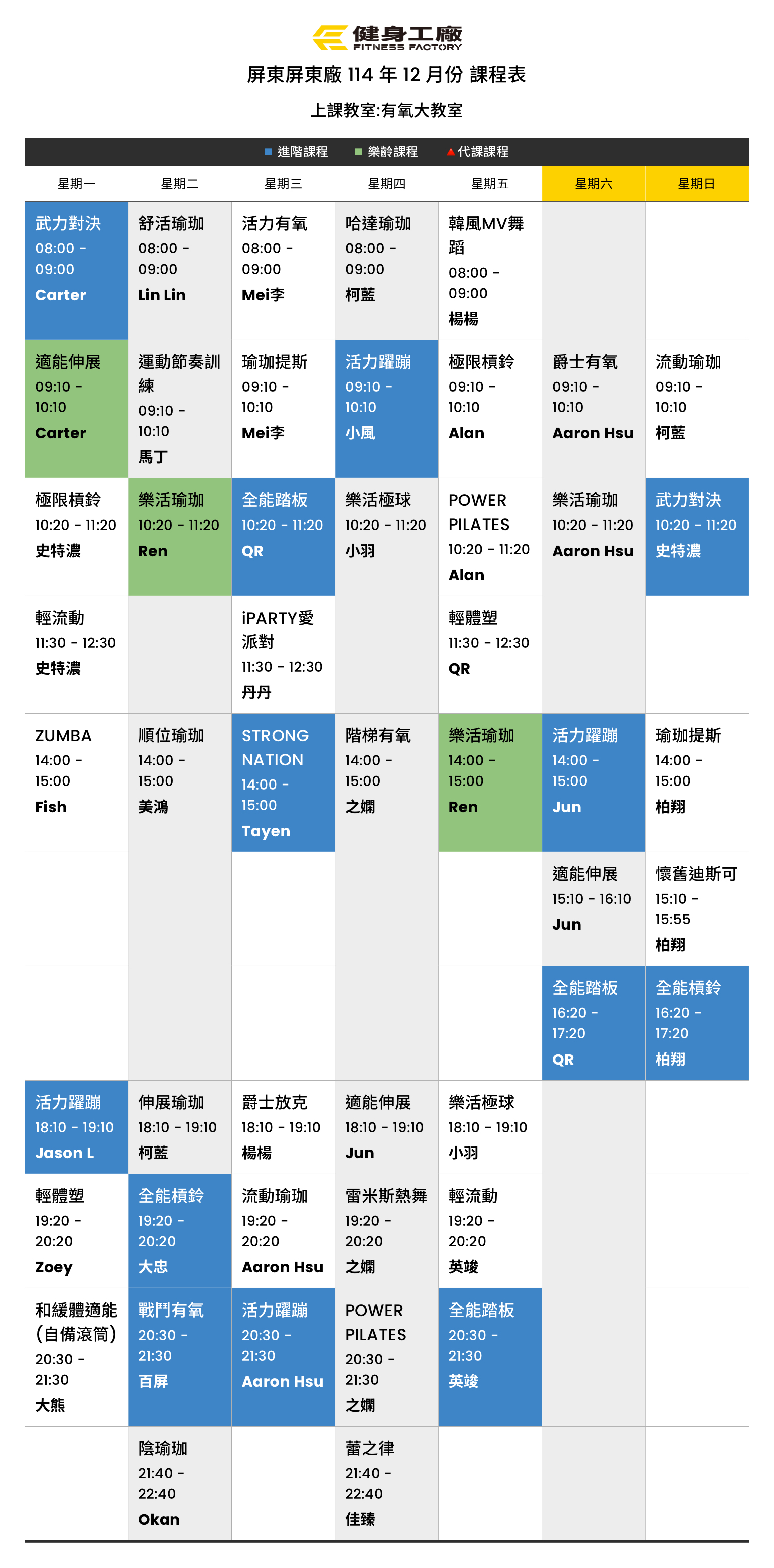 24Nov.2025【課表】屏東廠-12月有氧課表