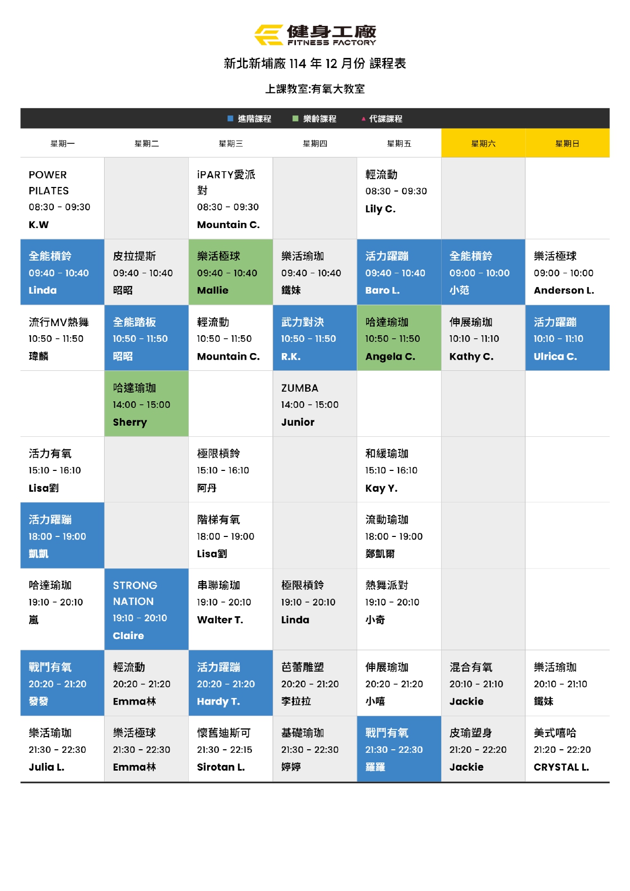 24Nov.2025【課表】新埔廠-12月有氧課表