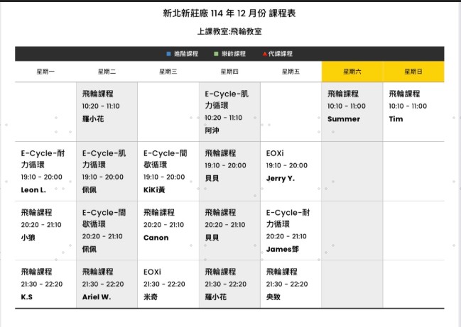 25Nov.2025【課表】新莊廠-12月 飛輪課表
