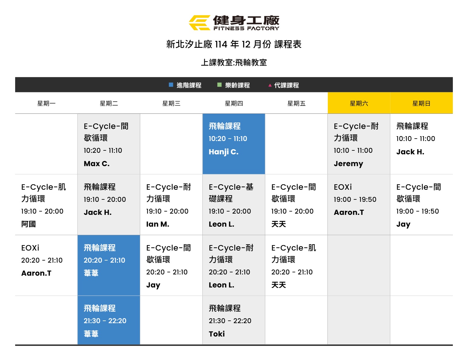 24Nov.2025【課表】汐止廠-12月飛輪課表