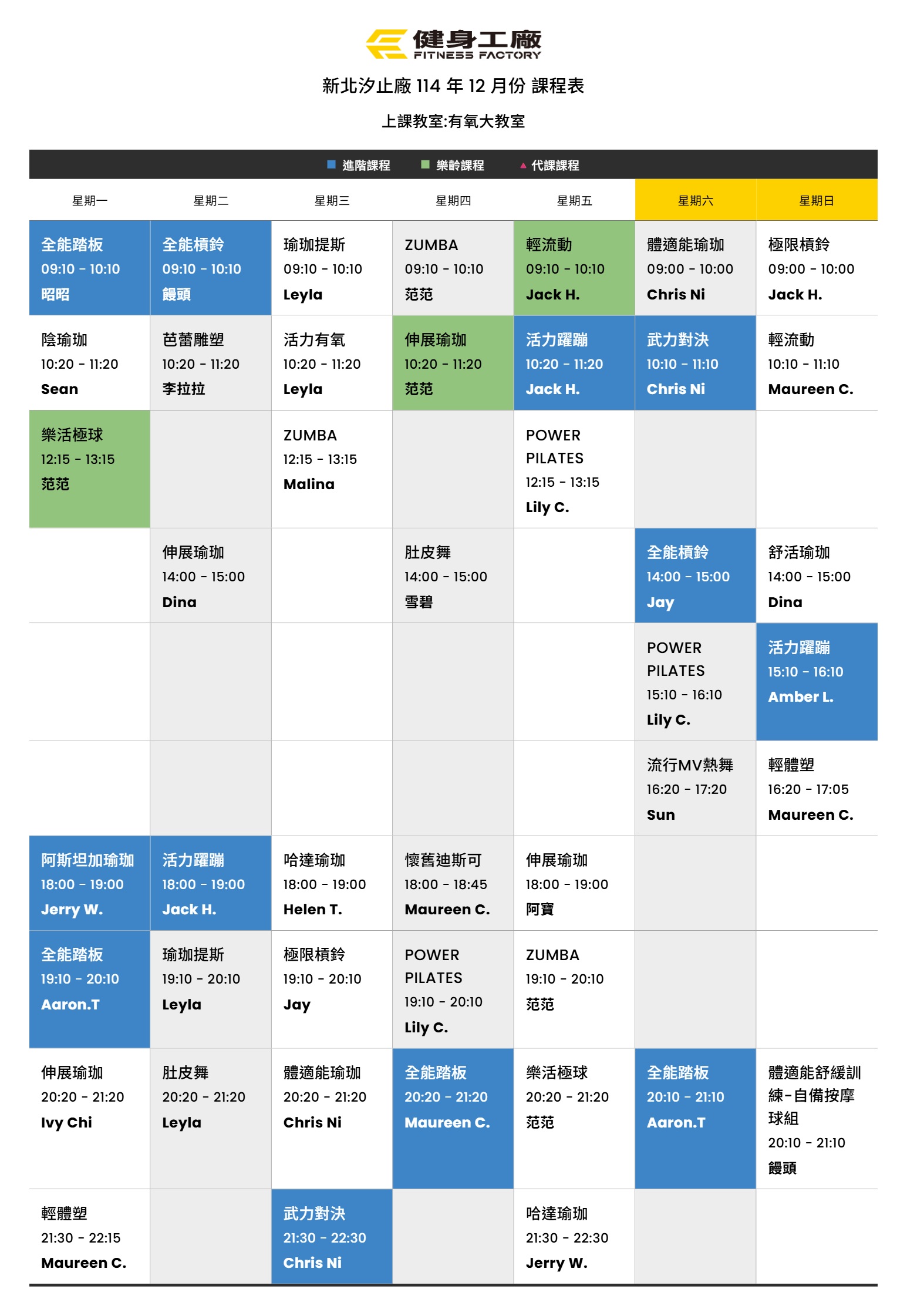 24Nov.2025【課表】汐止廠-12月有氧課表