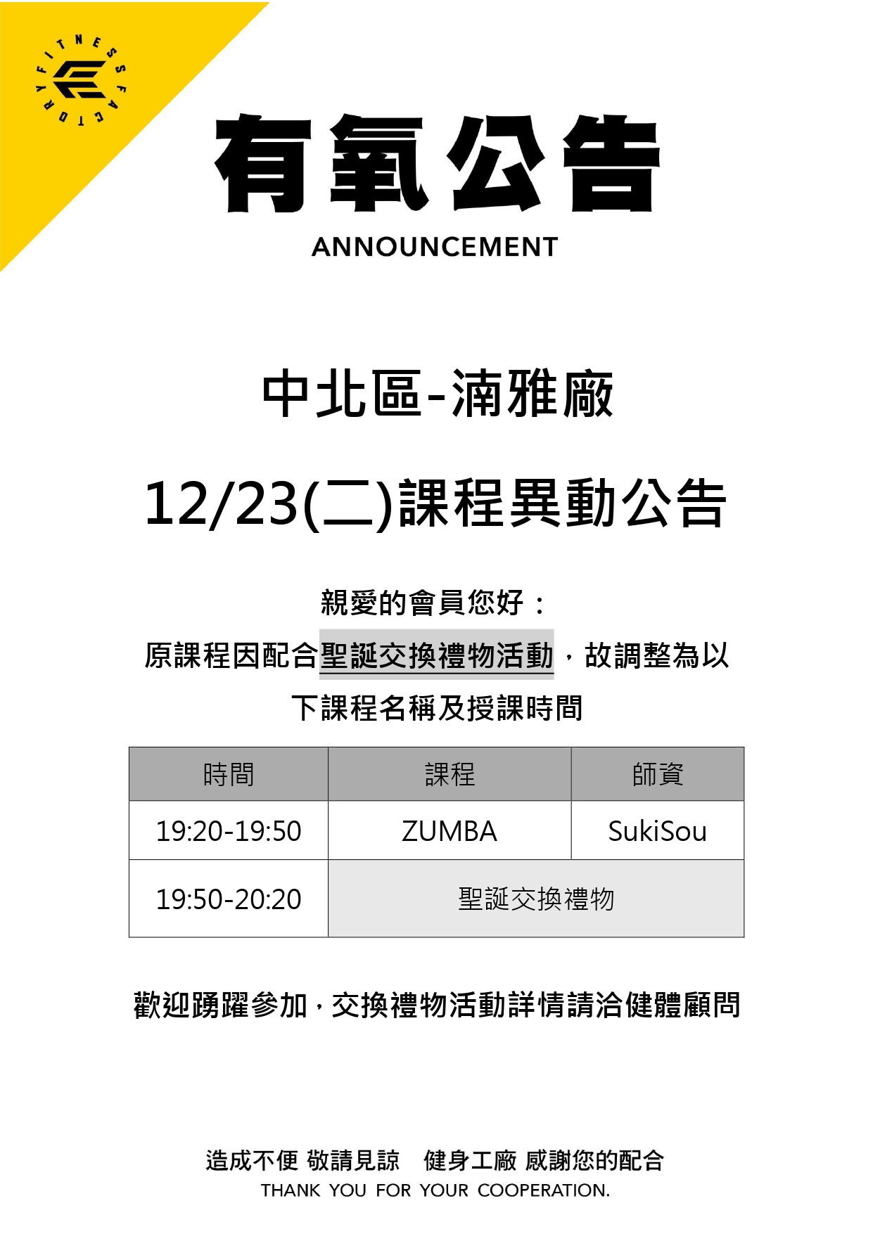 07Dec.2025【有氧公告】湳雅廠 12月課程異動公告