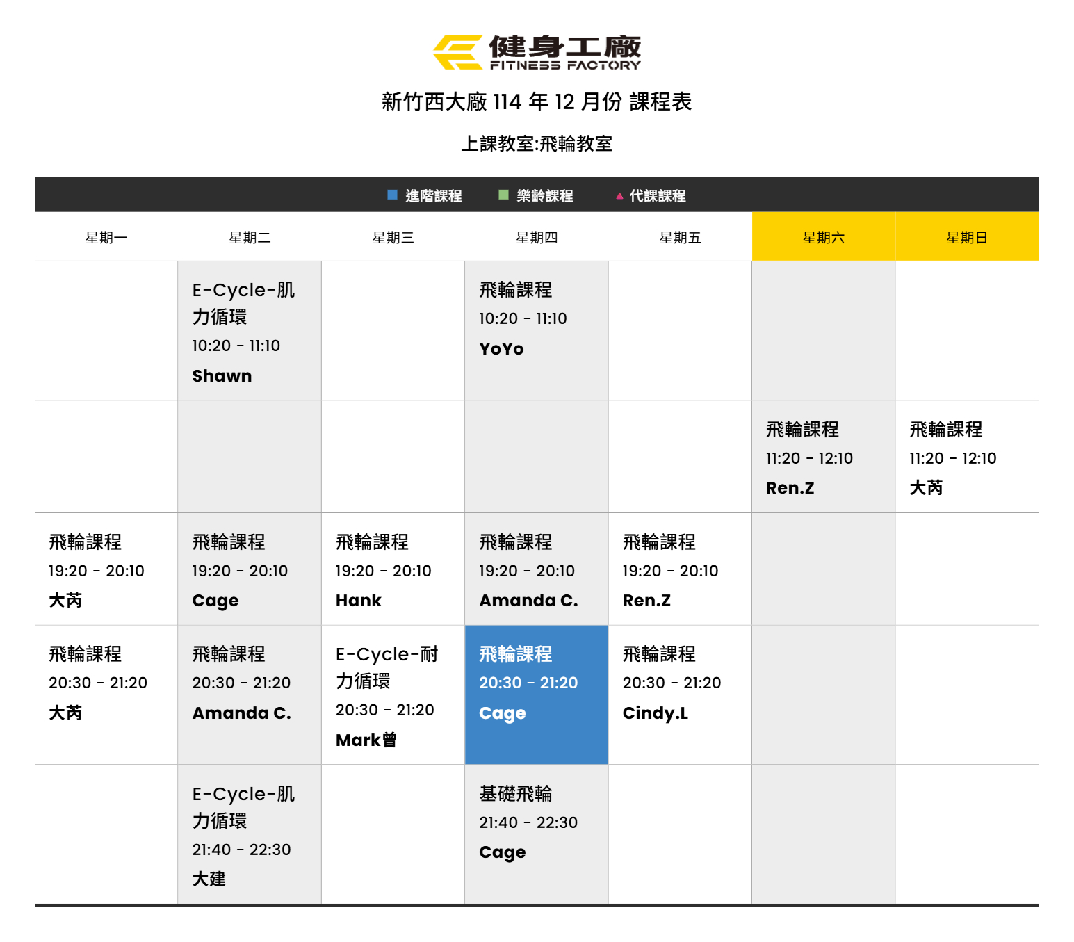 24Nov.2025【課表】西大廠-12月飛輪課表