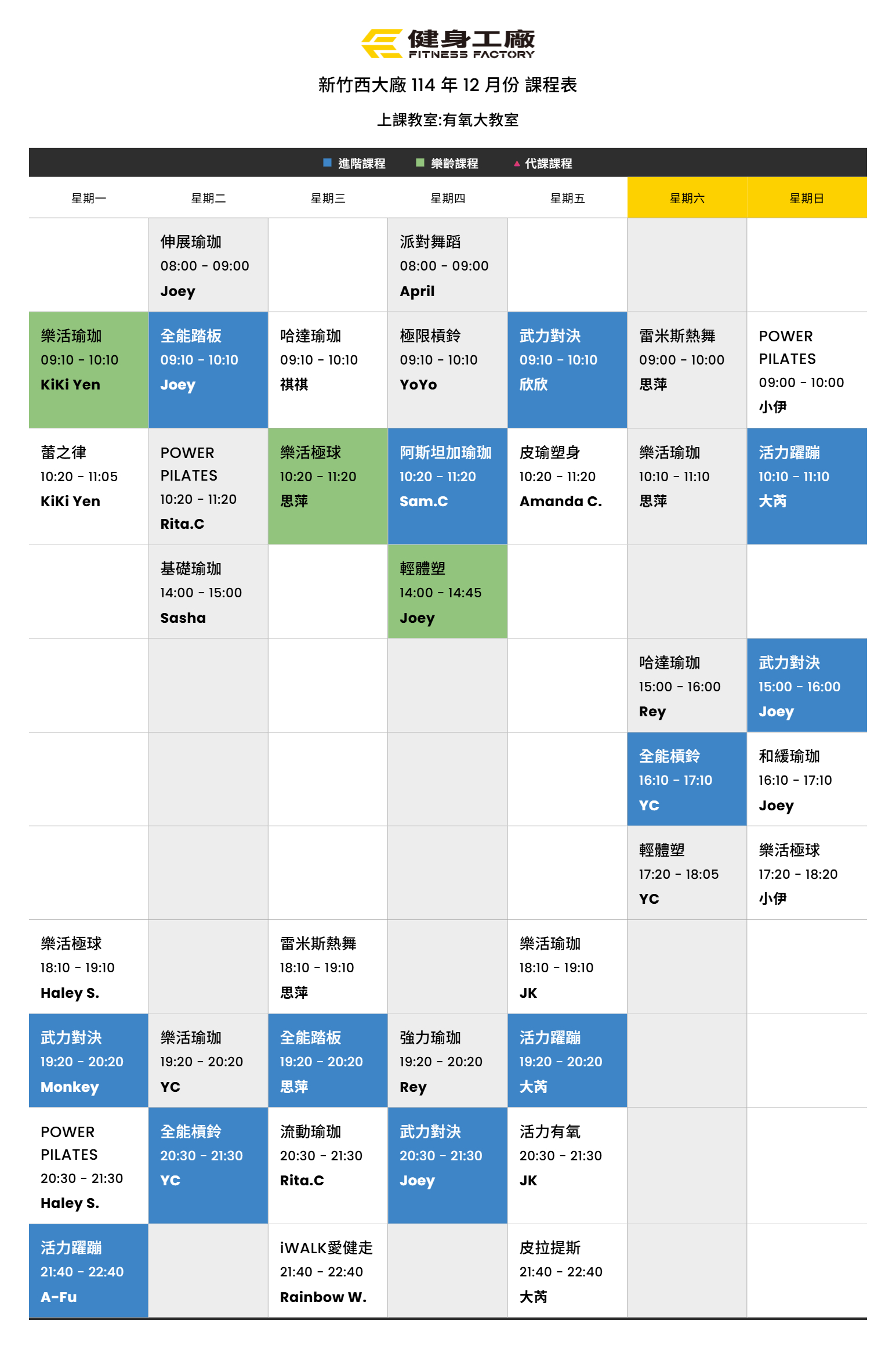 24Nov.2025【課表】西大廠-12月有氧課表