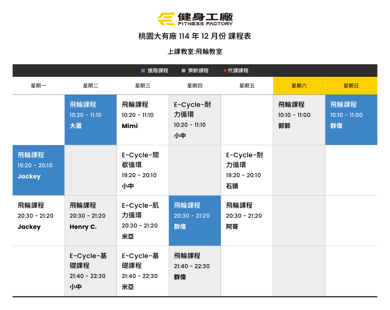 24Nov.2025【課表】大有廠-12月飛輪課表
