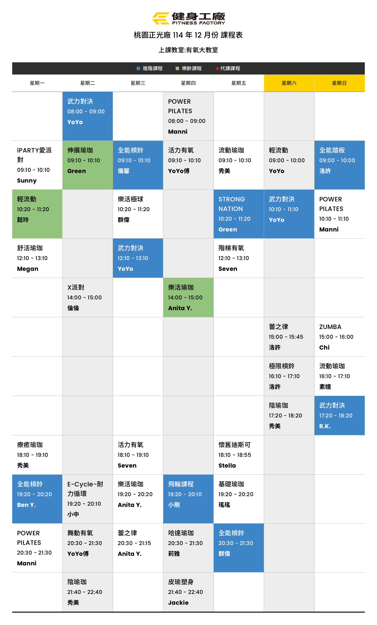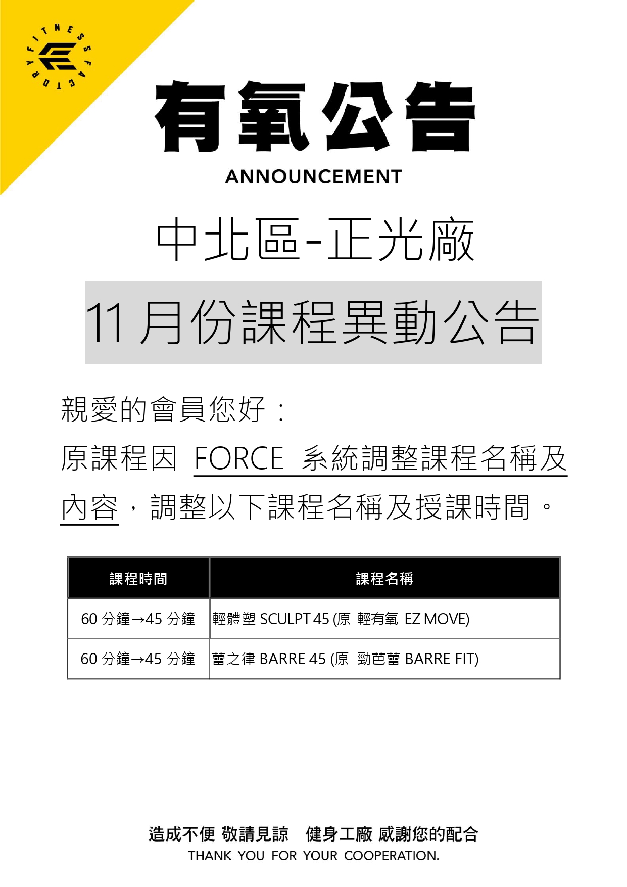 21Nov.2025【有氧公告】正光廠 課程異動公告