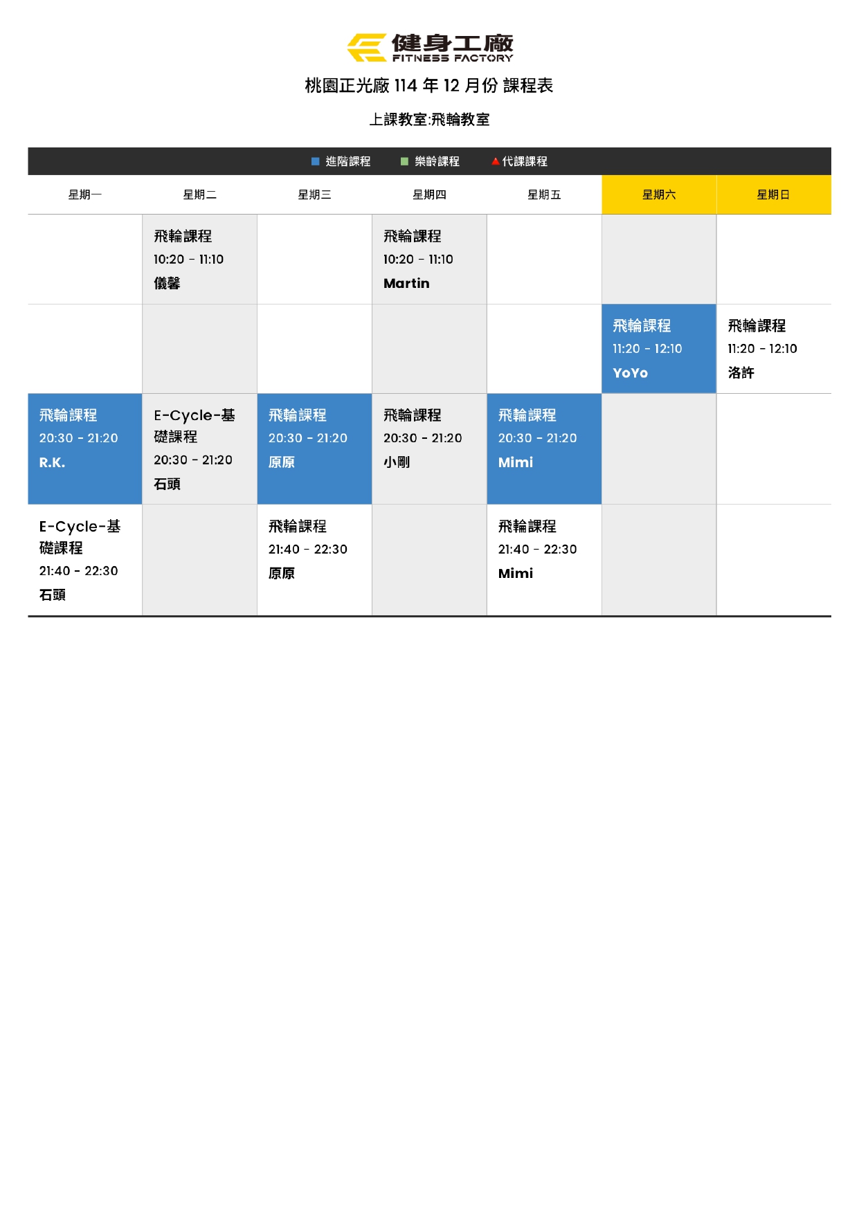 24Nov.2025【課表】正光廠-12月飛輪課表