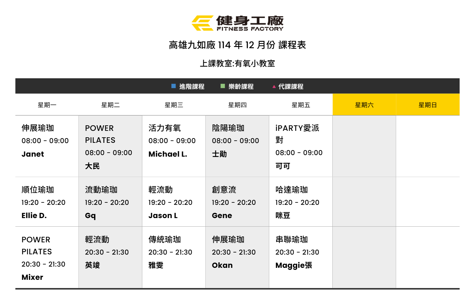 01Dec.2025【課表】九如廠-12月有氧課表