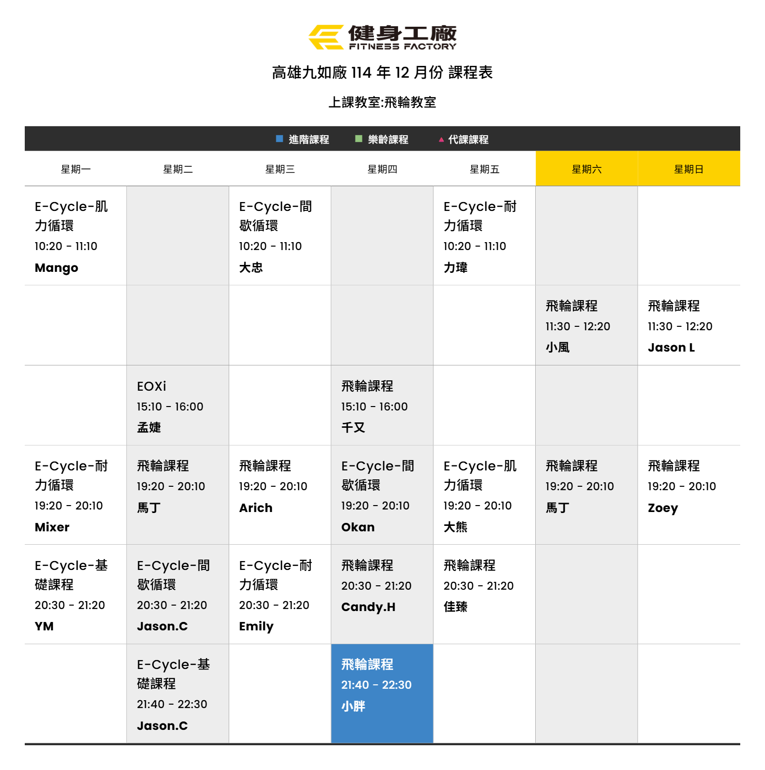 01Dec.2025【課表】九如廠-12月飛輪課表
