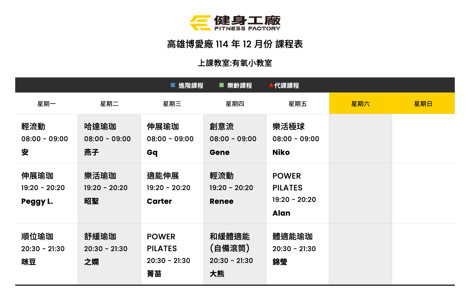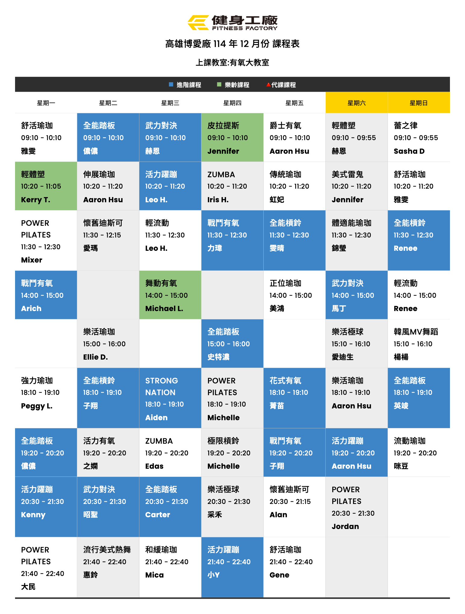01Dec.2025【課表】博愛廠-12月有氧課表