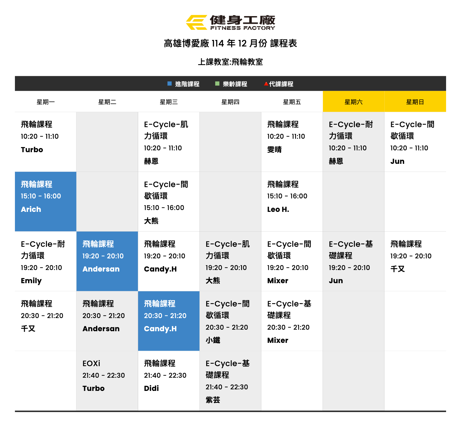 01Dec.2025【課表】博愛廠-12月飛輪課表