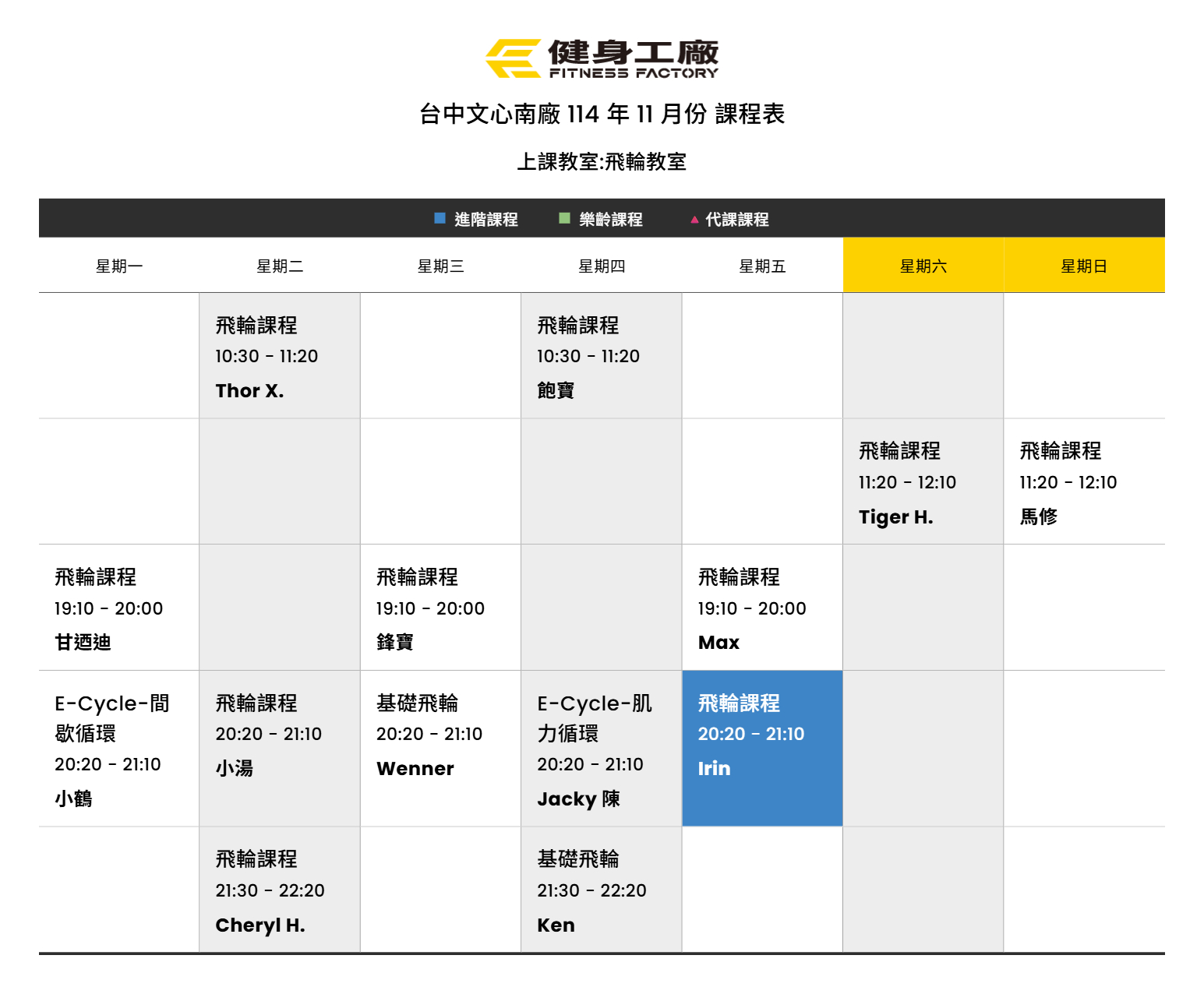 24Oct.2025【課表】文心南廠-11月飛輪課表