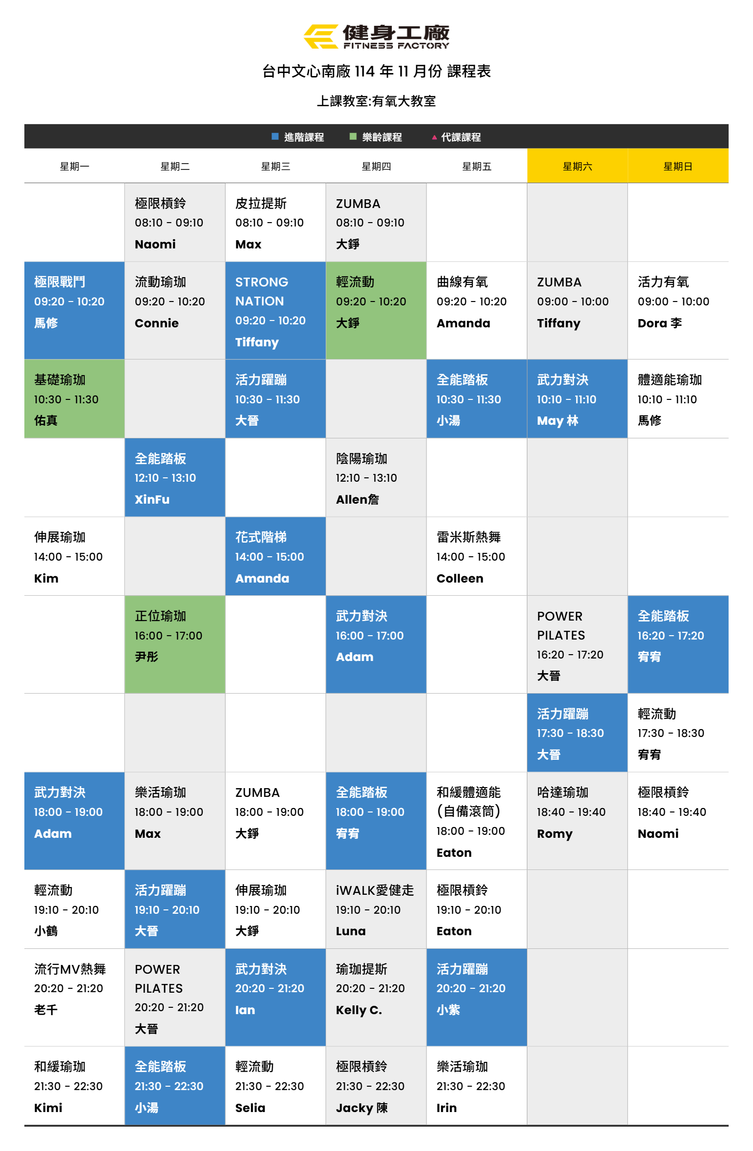 24Oct.2025【課表】文心南廠-11月有氧課表