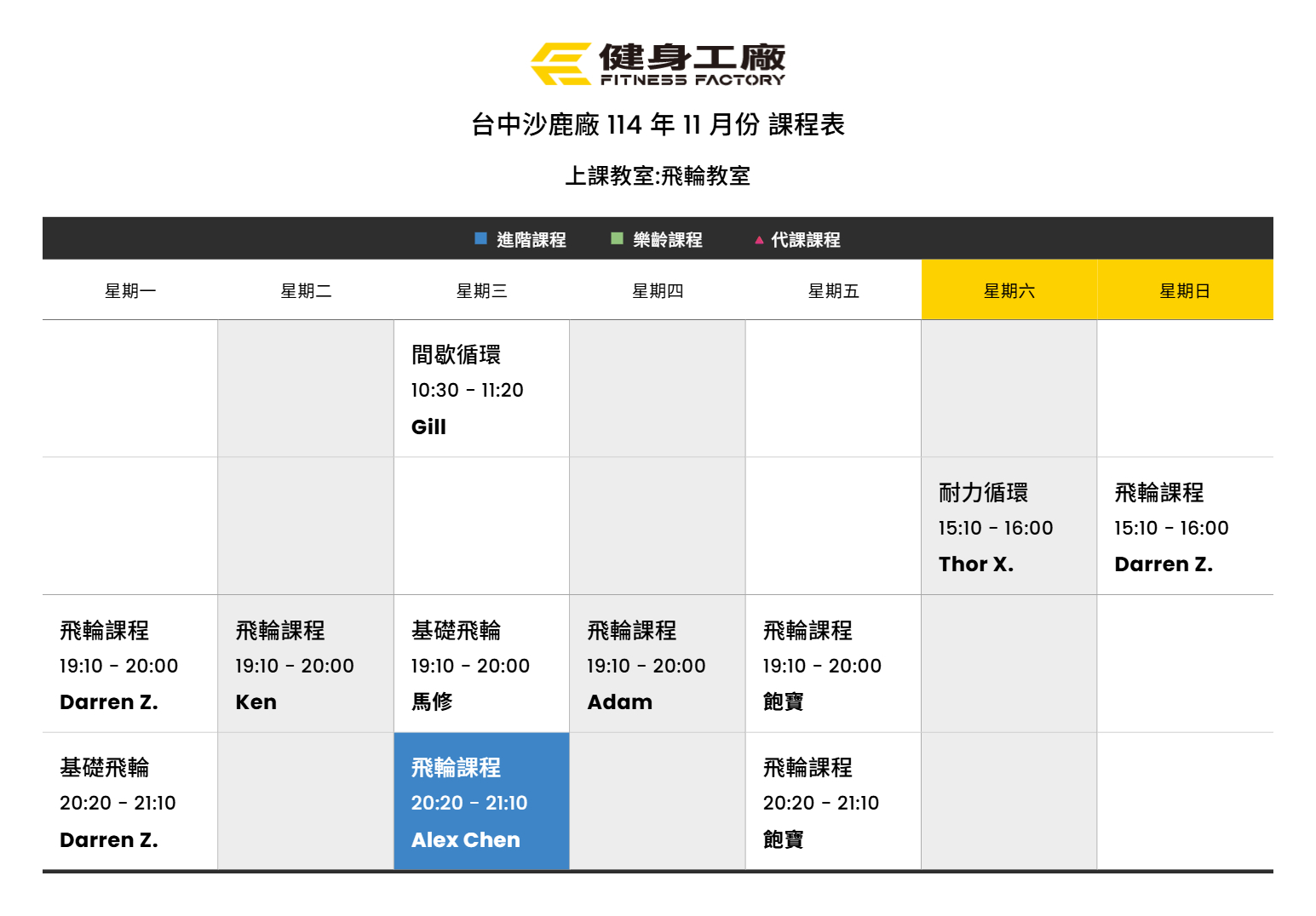24Oct.2025【課表】沙鹿廠-11月飛輪課表