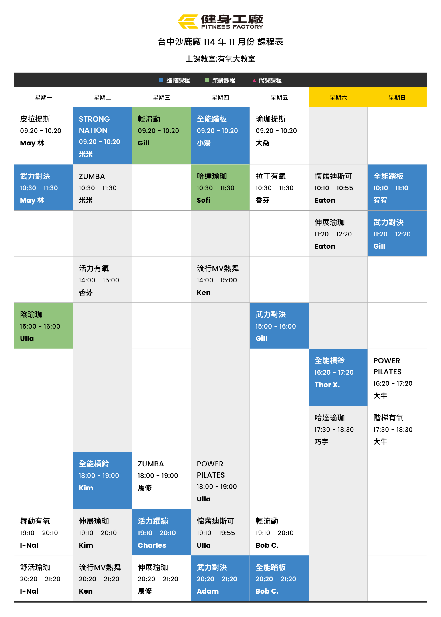 24Oct.2025【課表】沙鹿廠-11月有氧課表
