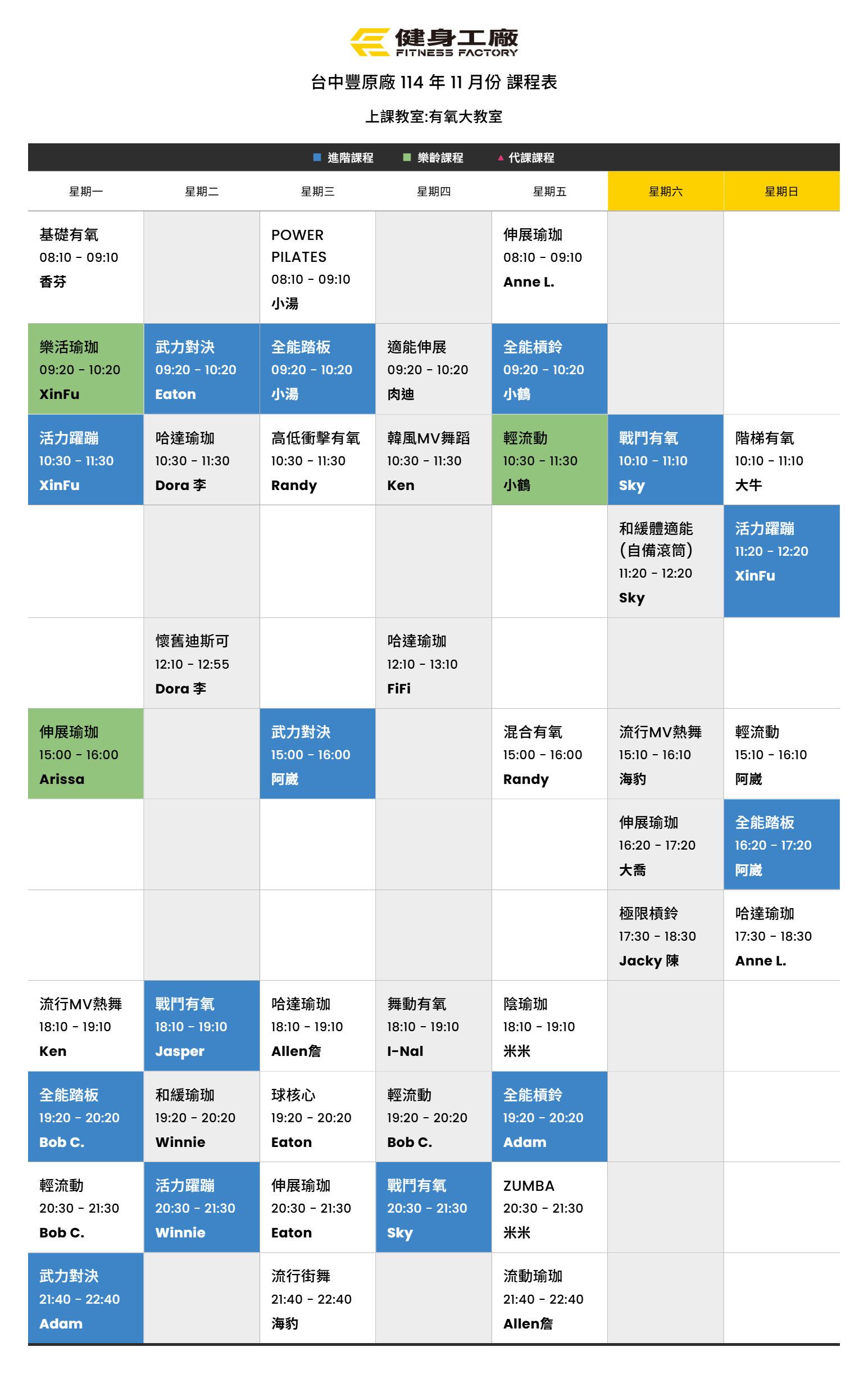 24Oct.2025【課表】豐原廠-11月有氧課表