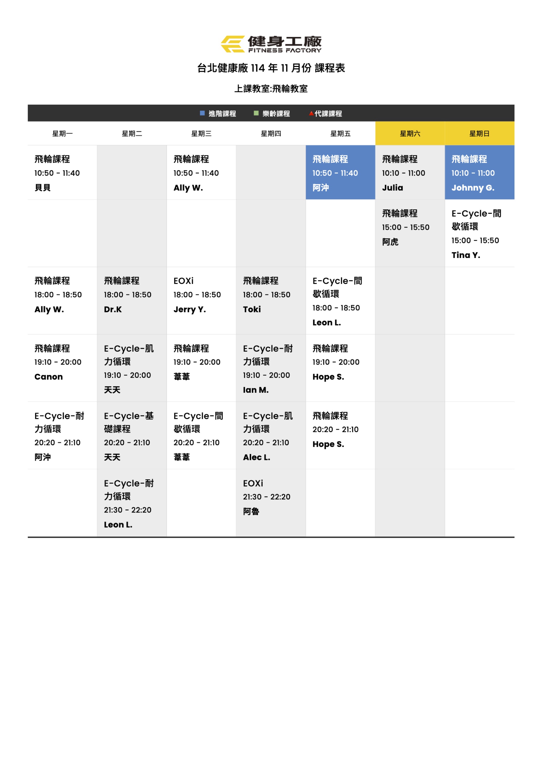 25Oct.2025【課表】健康廠-11月飛輪課表