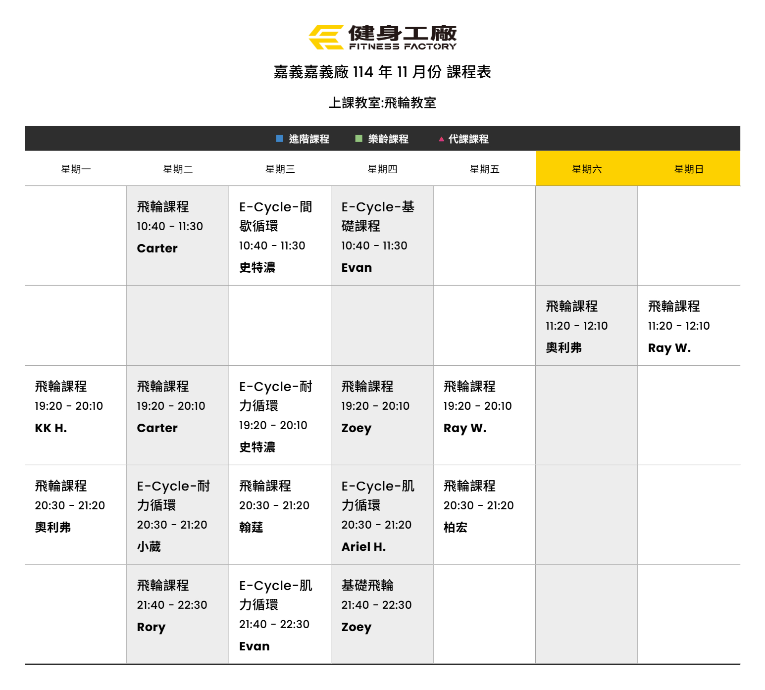 27Oct.2025【課表】嘉義廠-11月飛輪課表