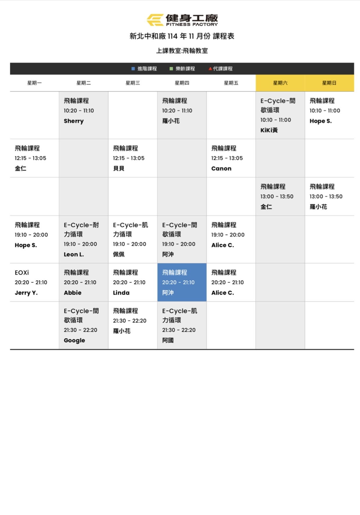 24Oct.2025【課表】中和廠-11月飛輪課表