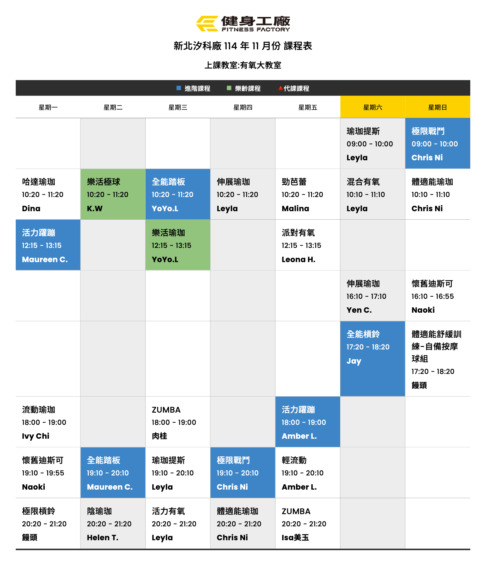 25Oct.2025【課表】汐科廠-11月有氧課表