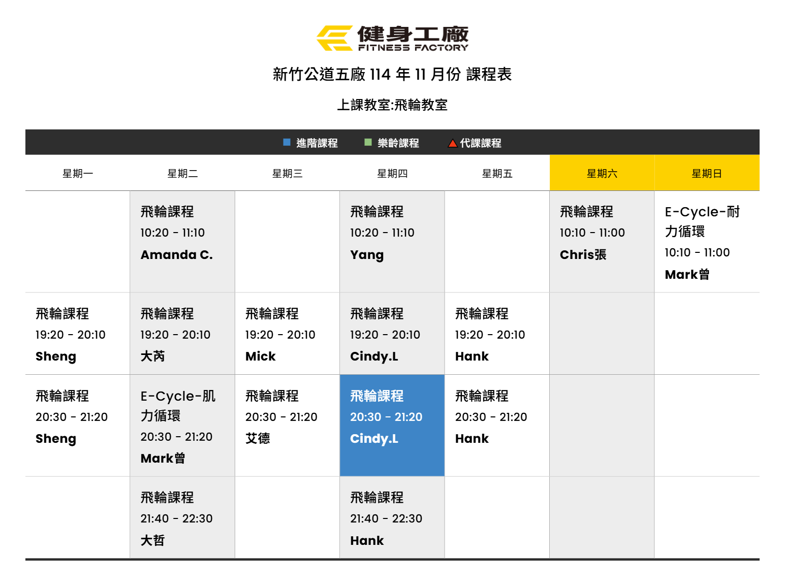 24Oct.2025【課表】公道五廠-11月飛輪課表