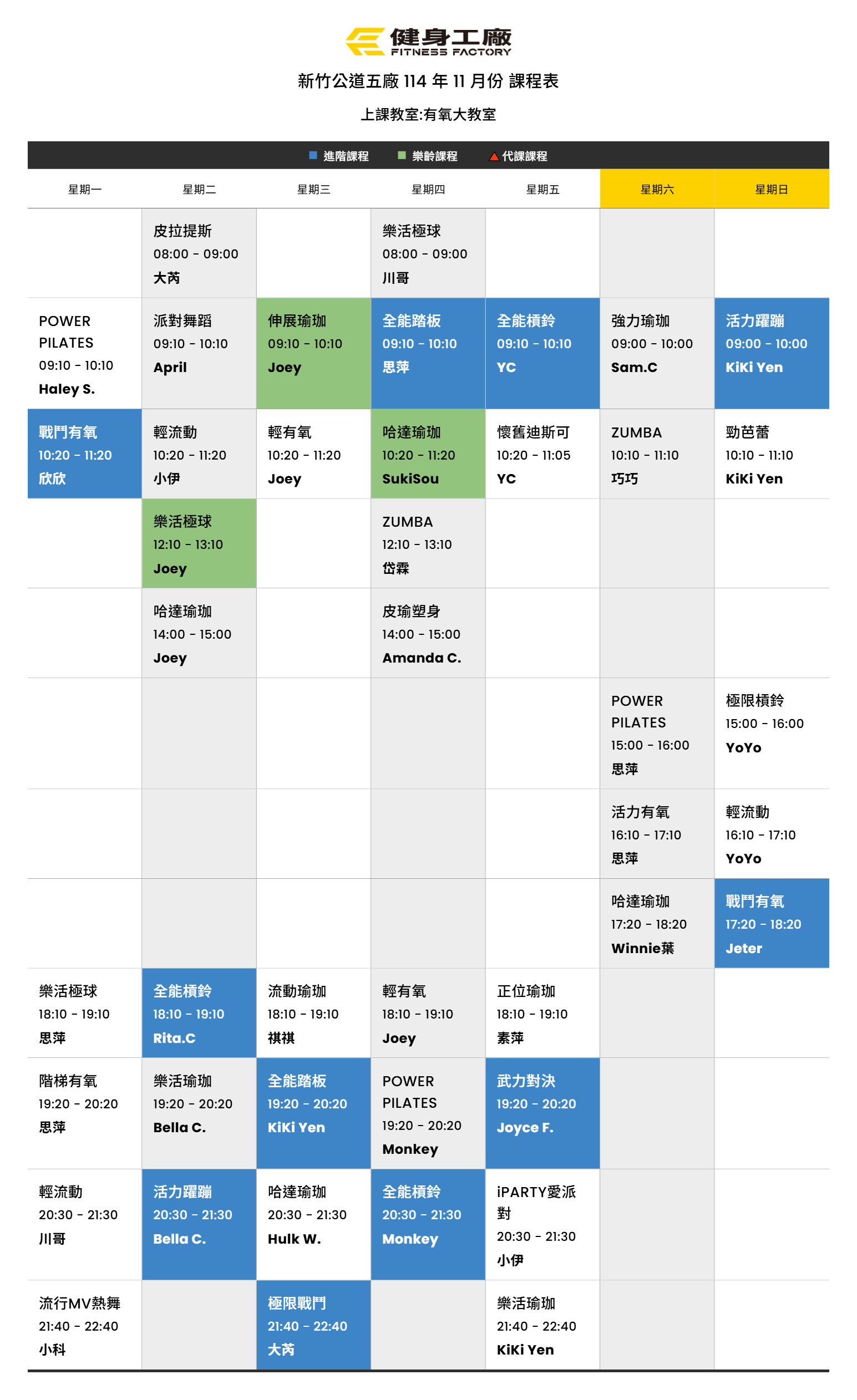 24Oct.2025【課表】公道五廠-11月有氧課表