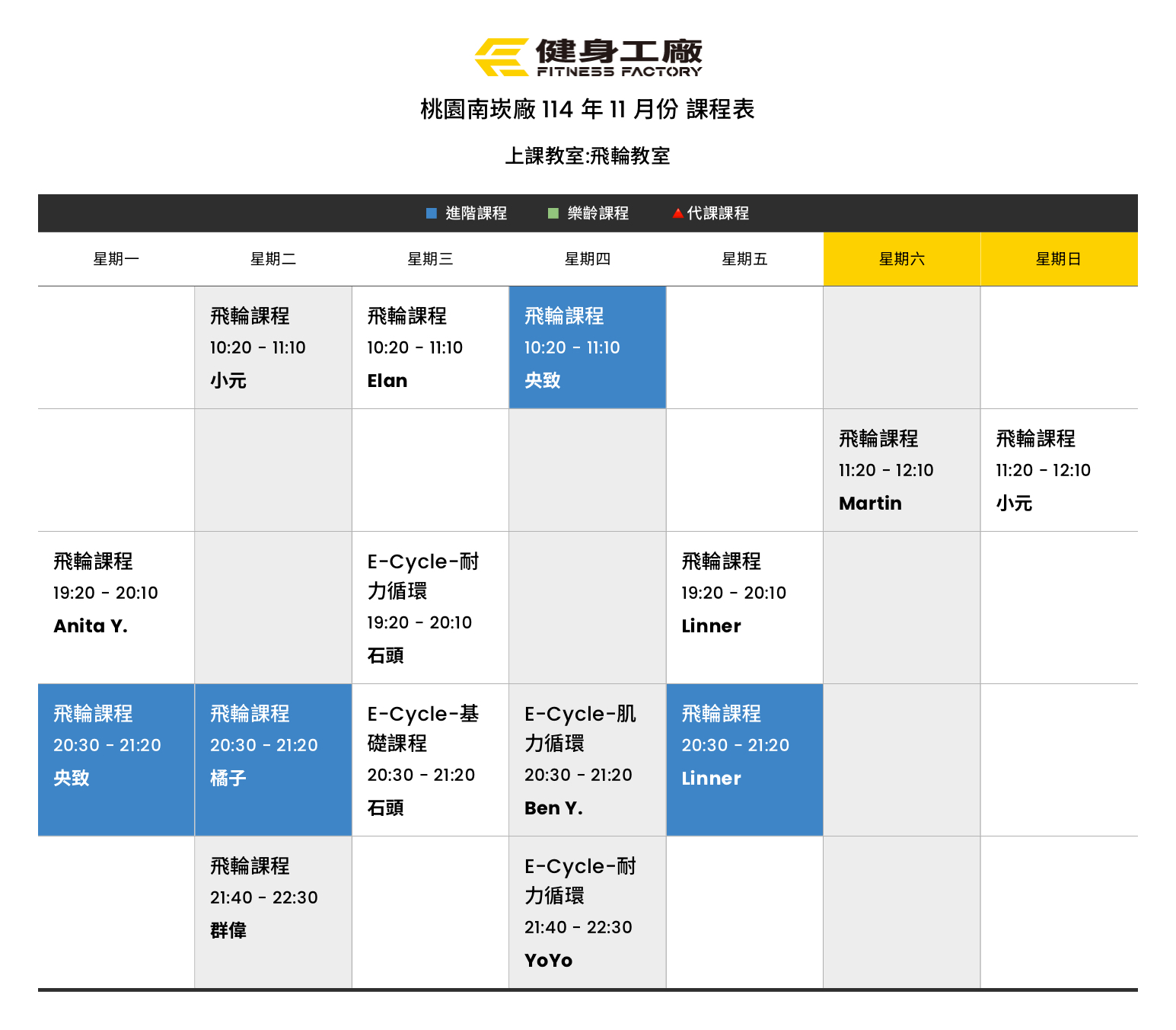 24Oct.2025【課表】南崁廠-11月飛輪課表