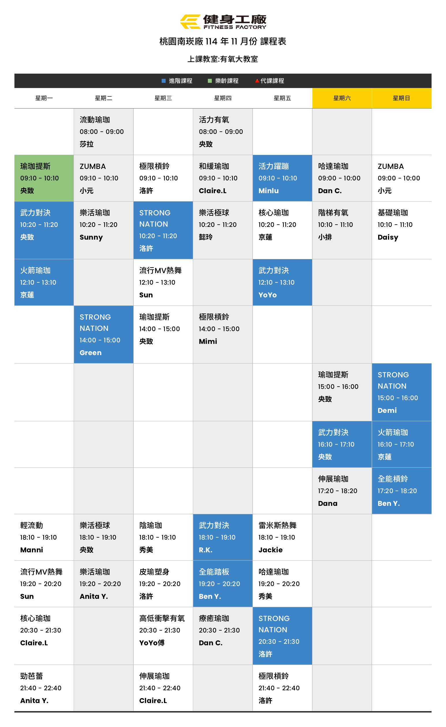 24Oct.2025【課表】南崁廠-11月有氧課表