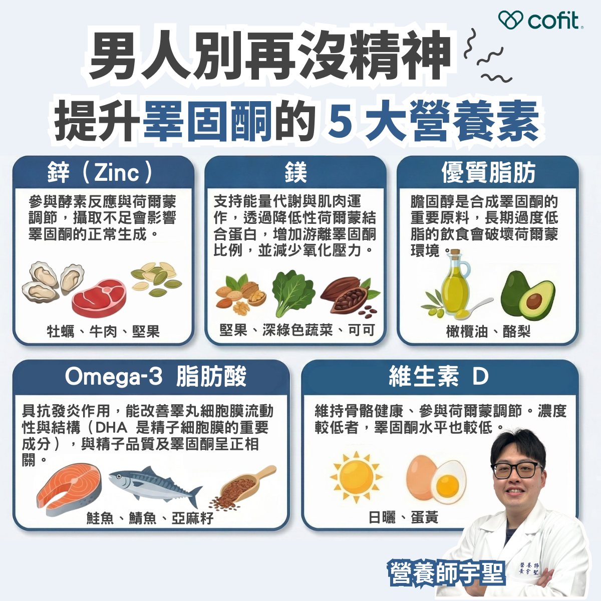 三、5 大關鍵營養素,幫助維持睪固酮健康