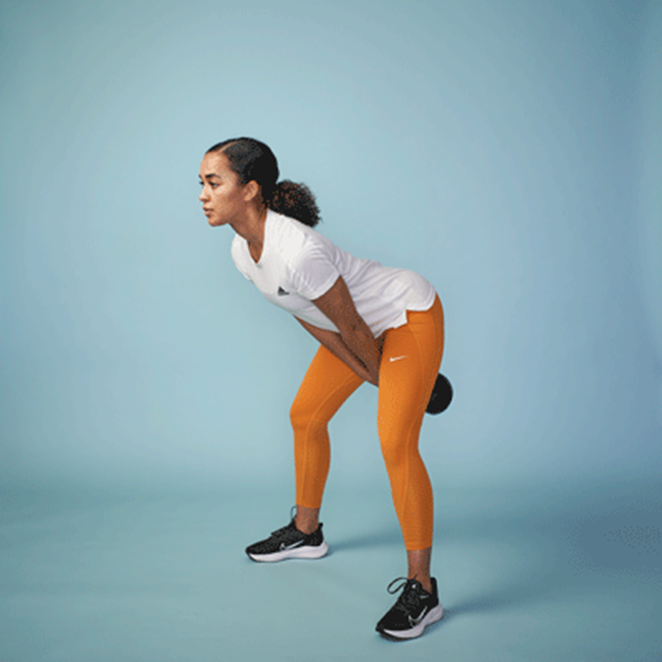 - 呼氣同時維持後側與核心張力,如硬舉般讓身體充滿力量的站直。