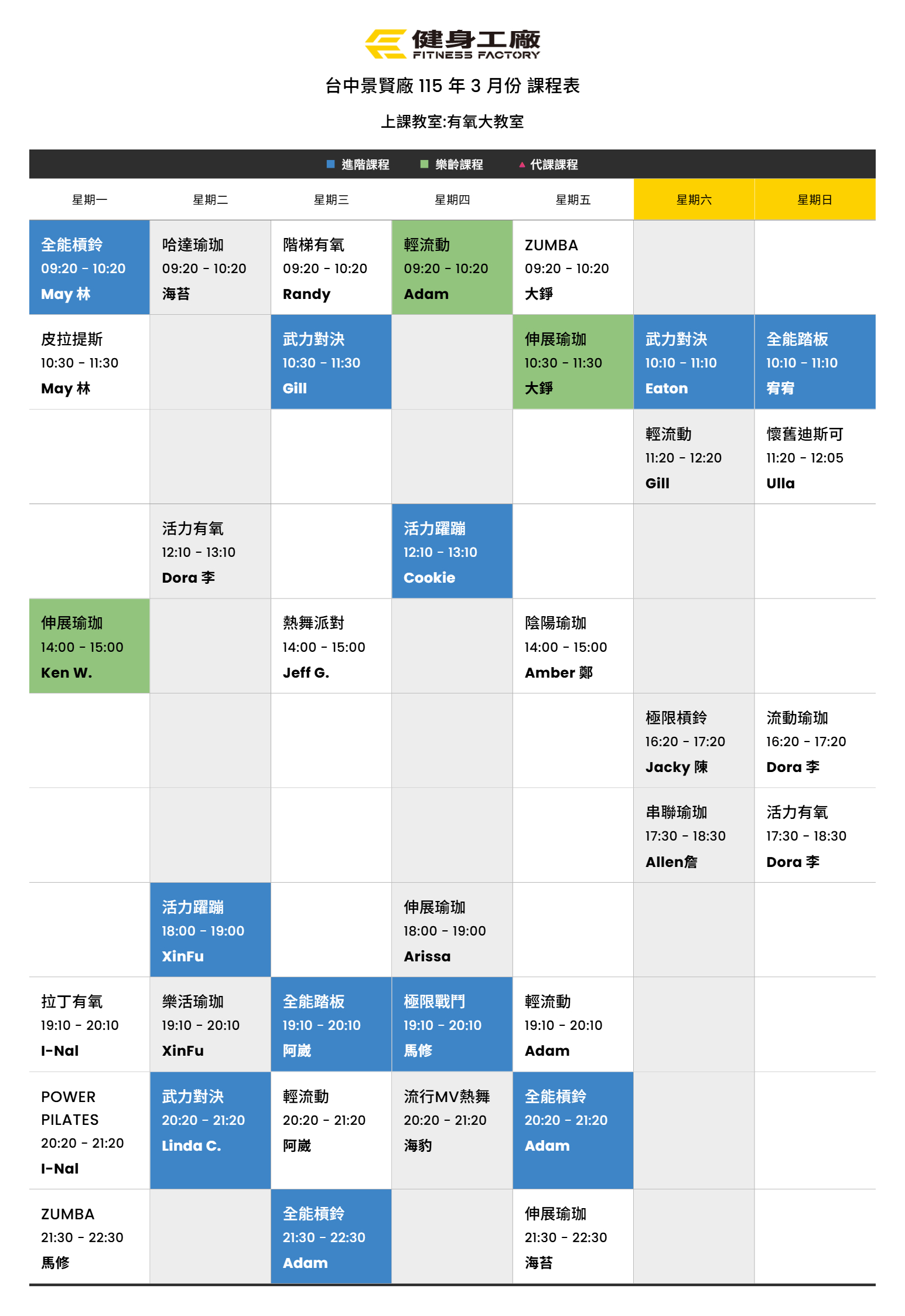 25Feb.2026【課表】景賢廠-3月有氧課表