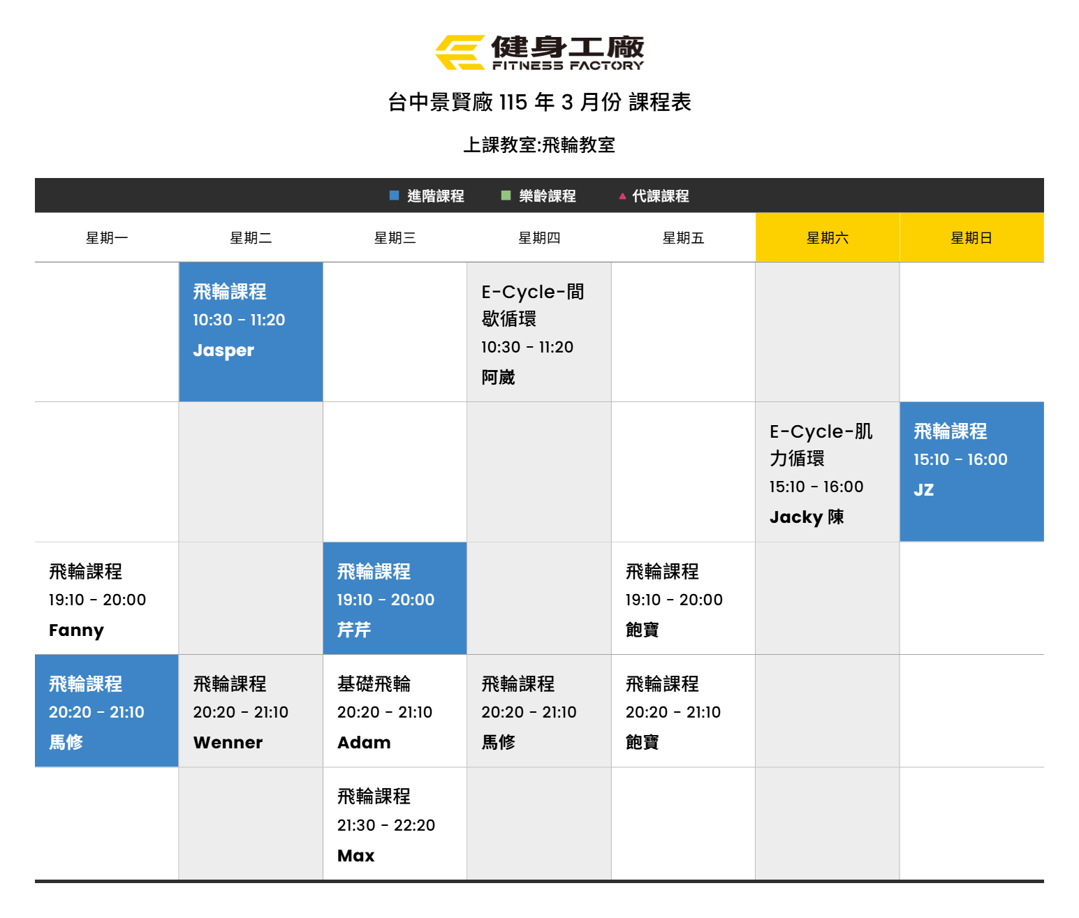 25Feb.2026【課表】景賢廠-3月飛輪課表