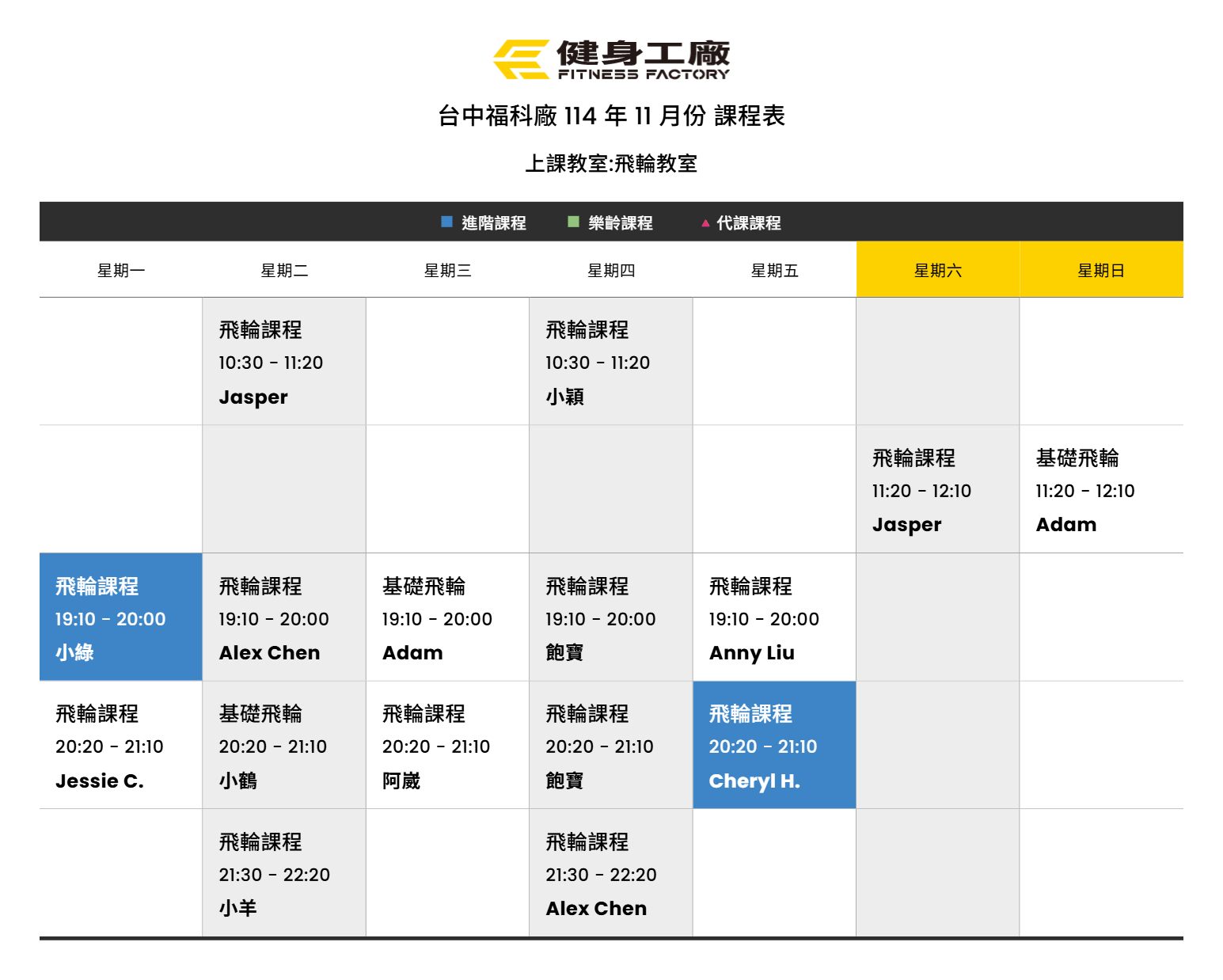 24Oct.2025【課表】福科廠-11月飛輪課表