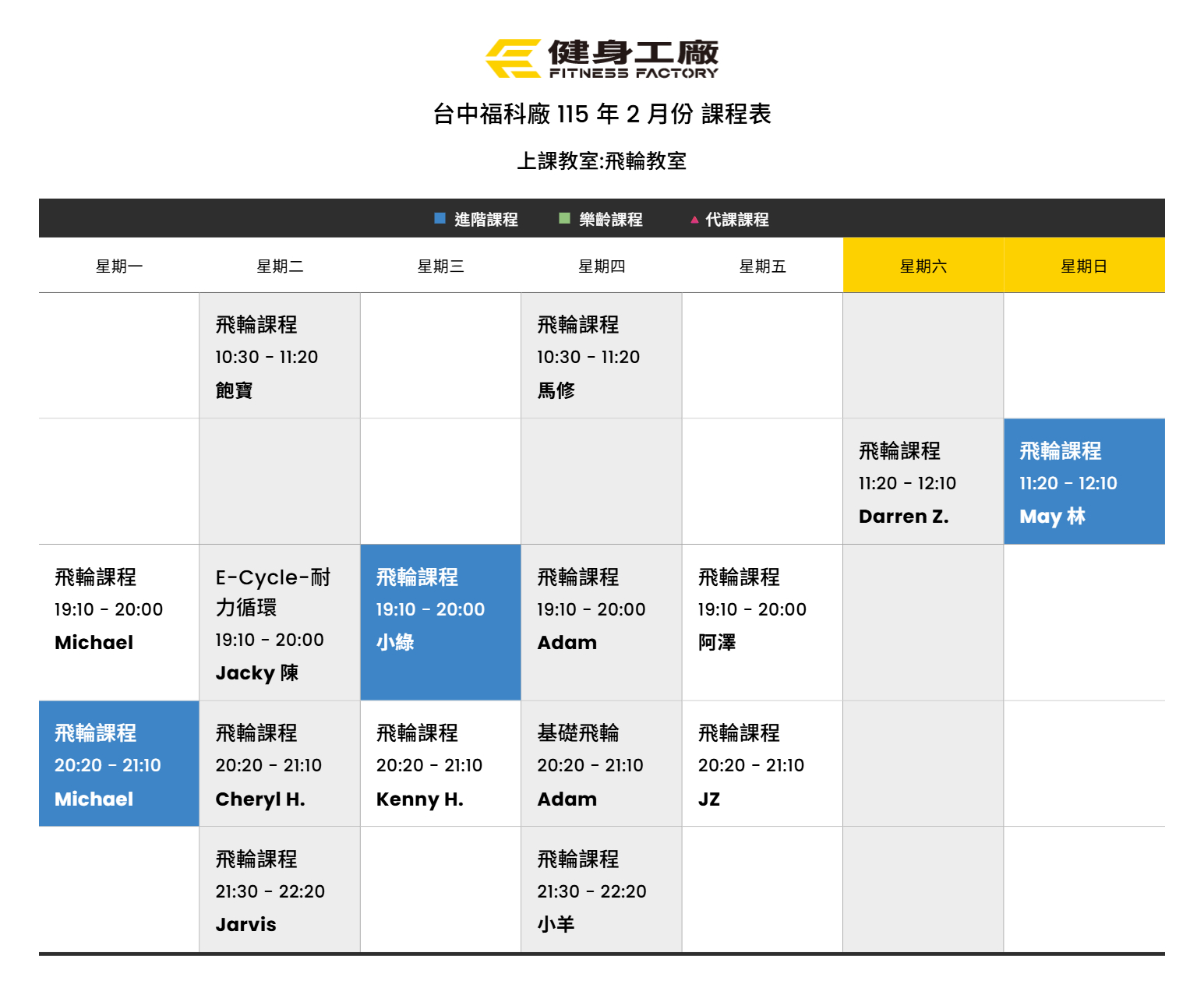 24Jan.2026【課表】福科廠-2月飛輪課表