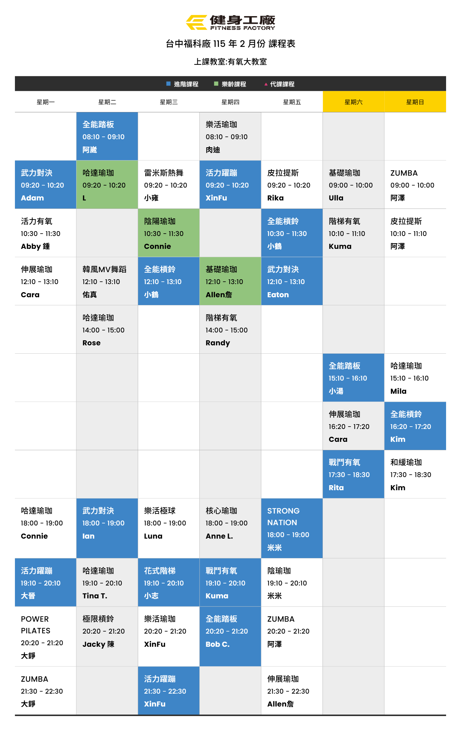 24Jan.2026【課表】福科廠-2月有氧課表