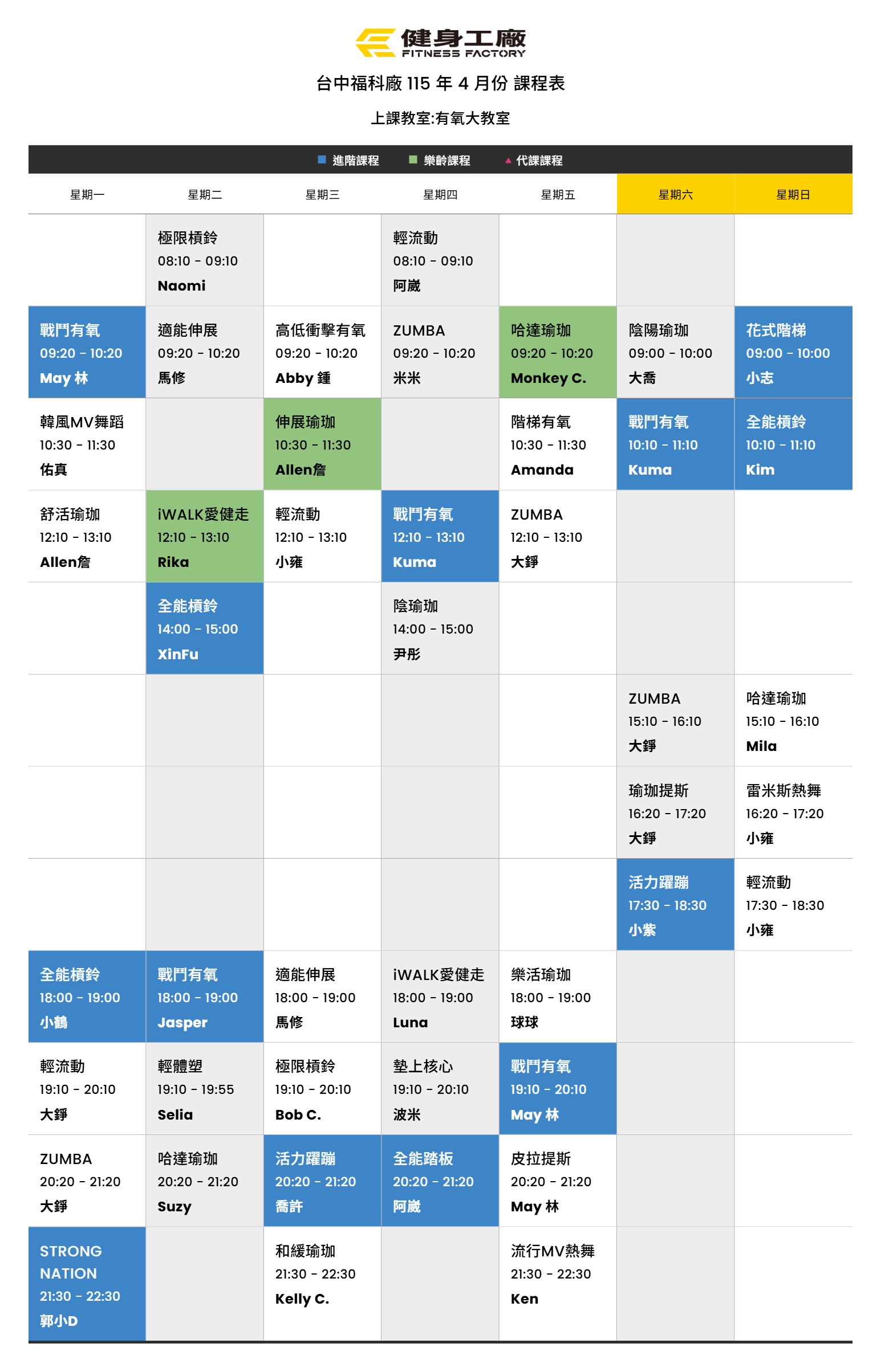24Mar.2026【課表】福科廠-4月有氧課表