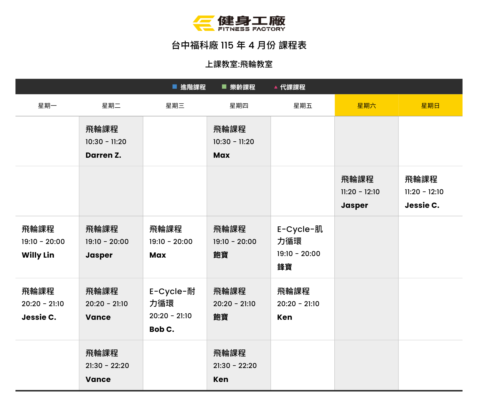 24Mar.2026【課表】福科廠-4月飛輪課表