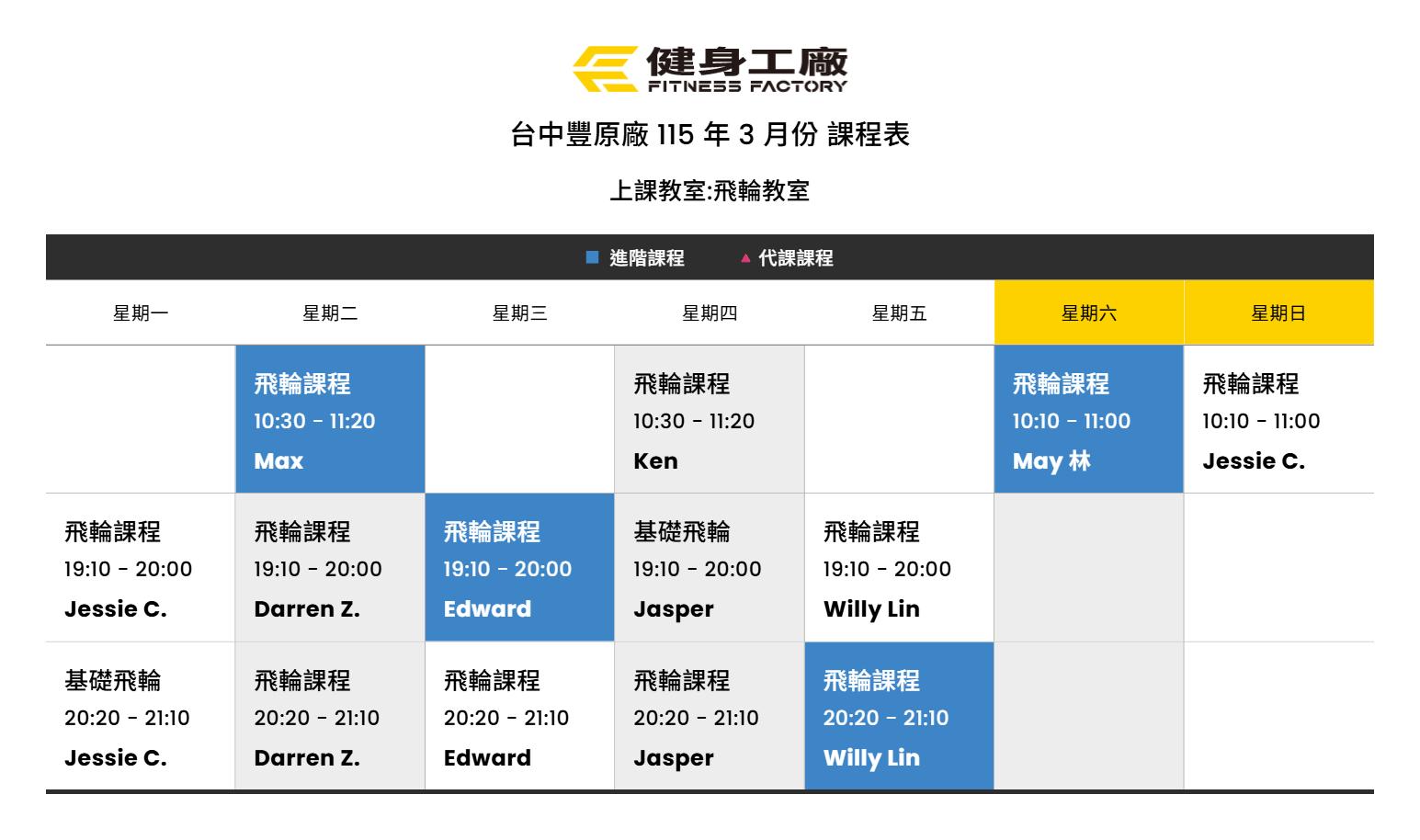25Feb.2026【課表】豐原廠-3月飛輪課表