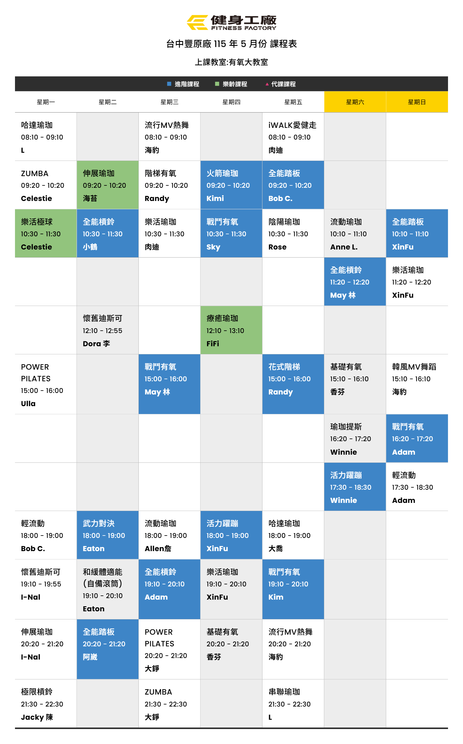 26Apr.2026【課表】豐原廠-5月有氧課表