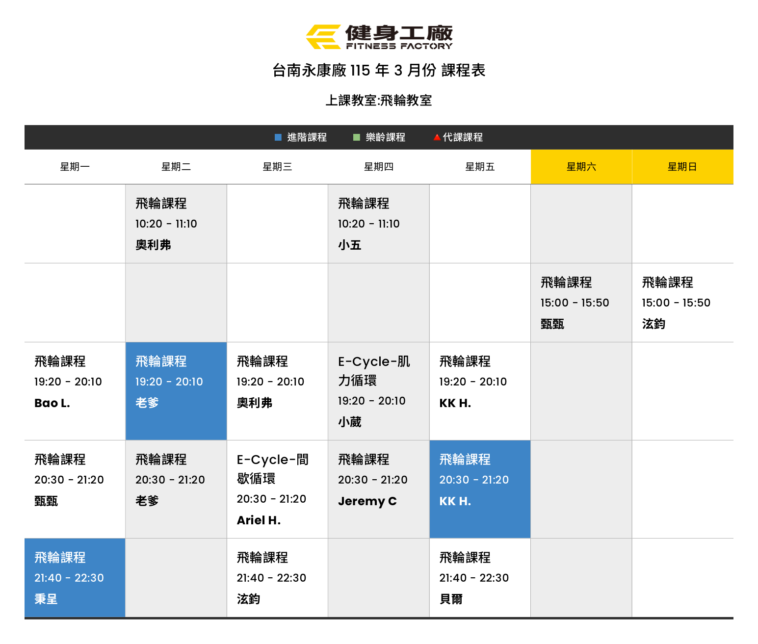 24Feb.2026【課表】永康廠-3月飛輪課表
