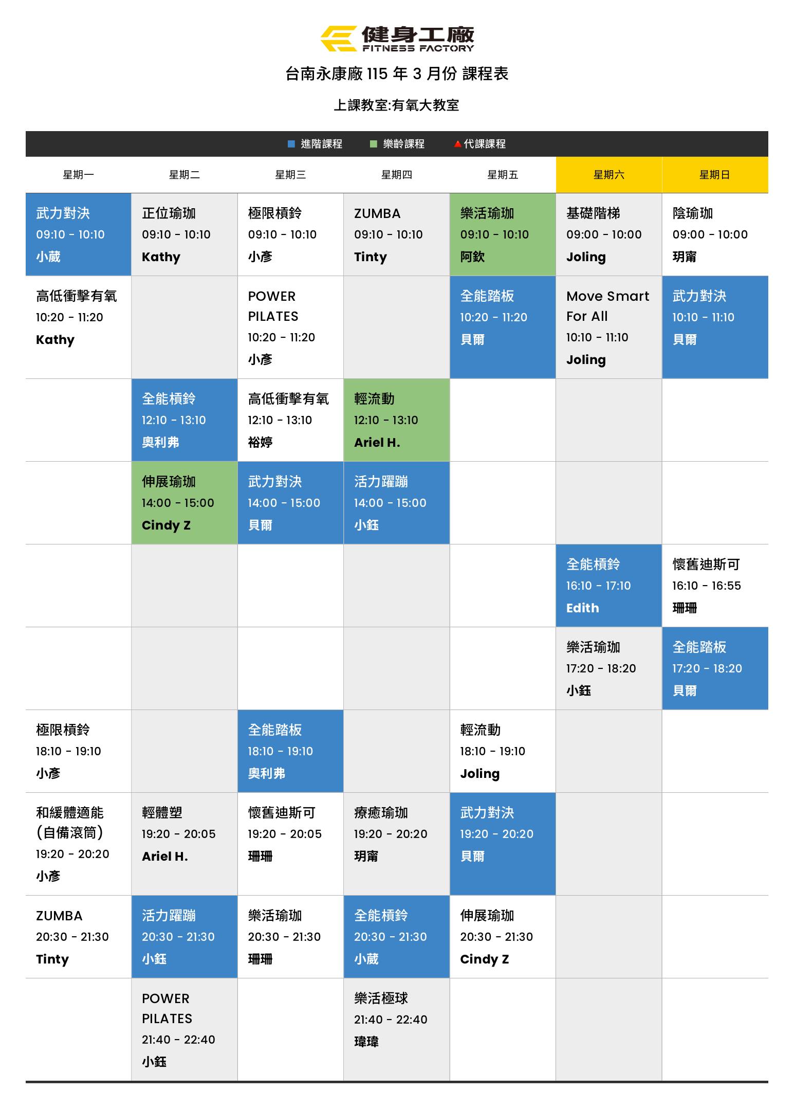 24Feb.2026【課表】永康廠-3月有氧課表