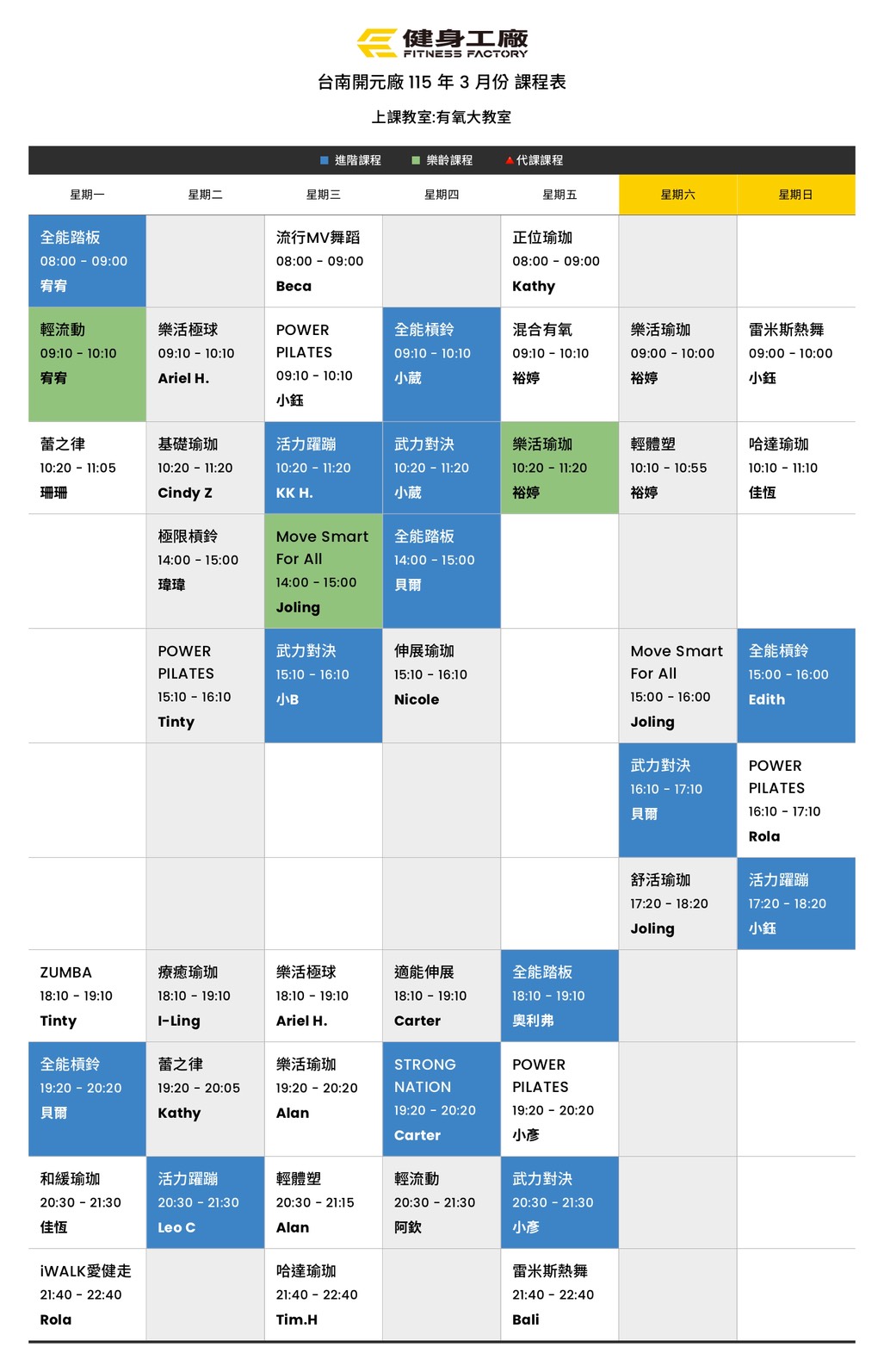 01Mar.2026【課表】開元廠-3月有氧課表
