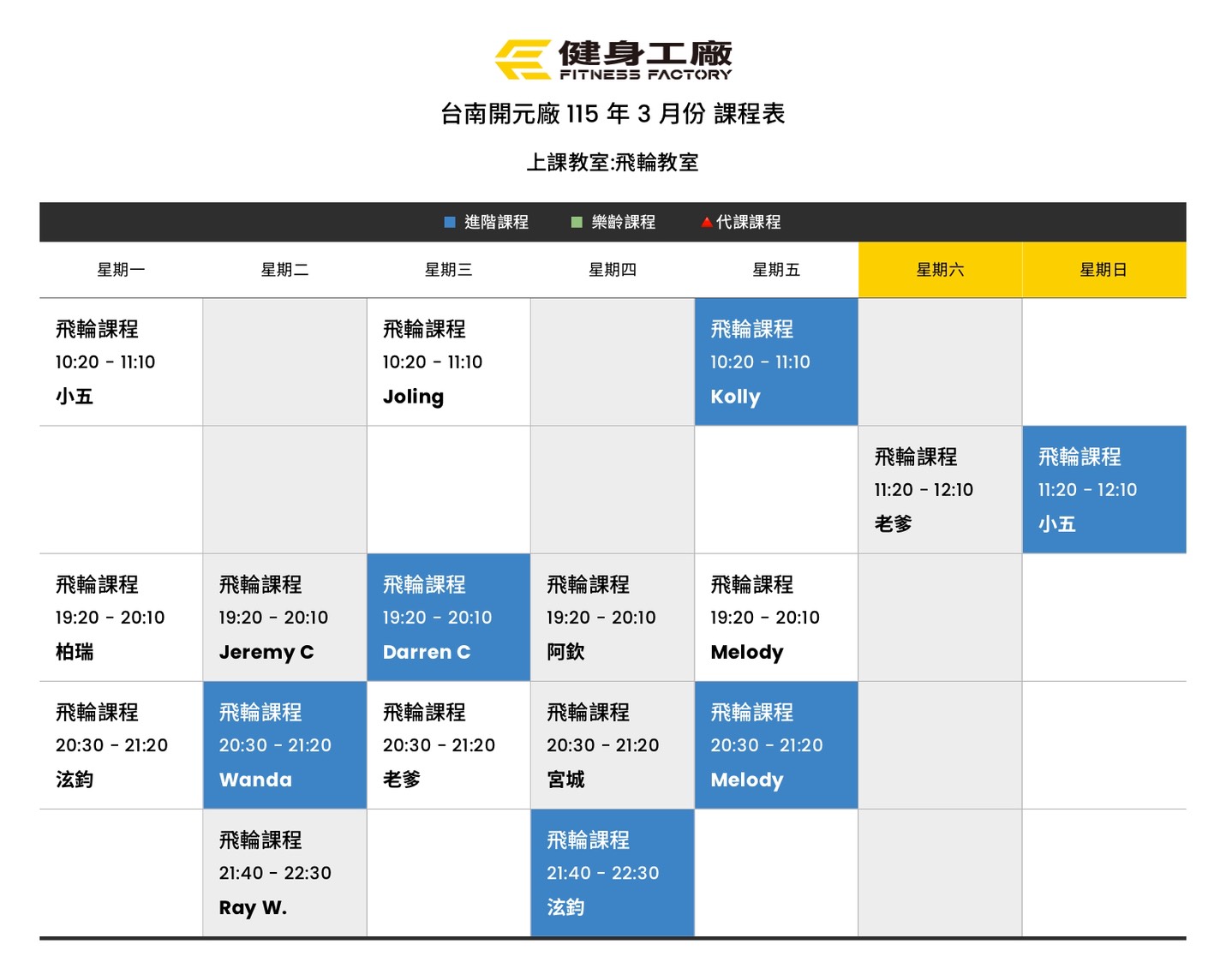 01Mar.2026【課表】開元廠-3月飛輪課表