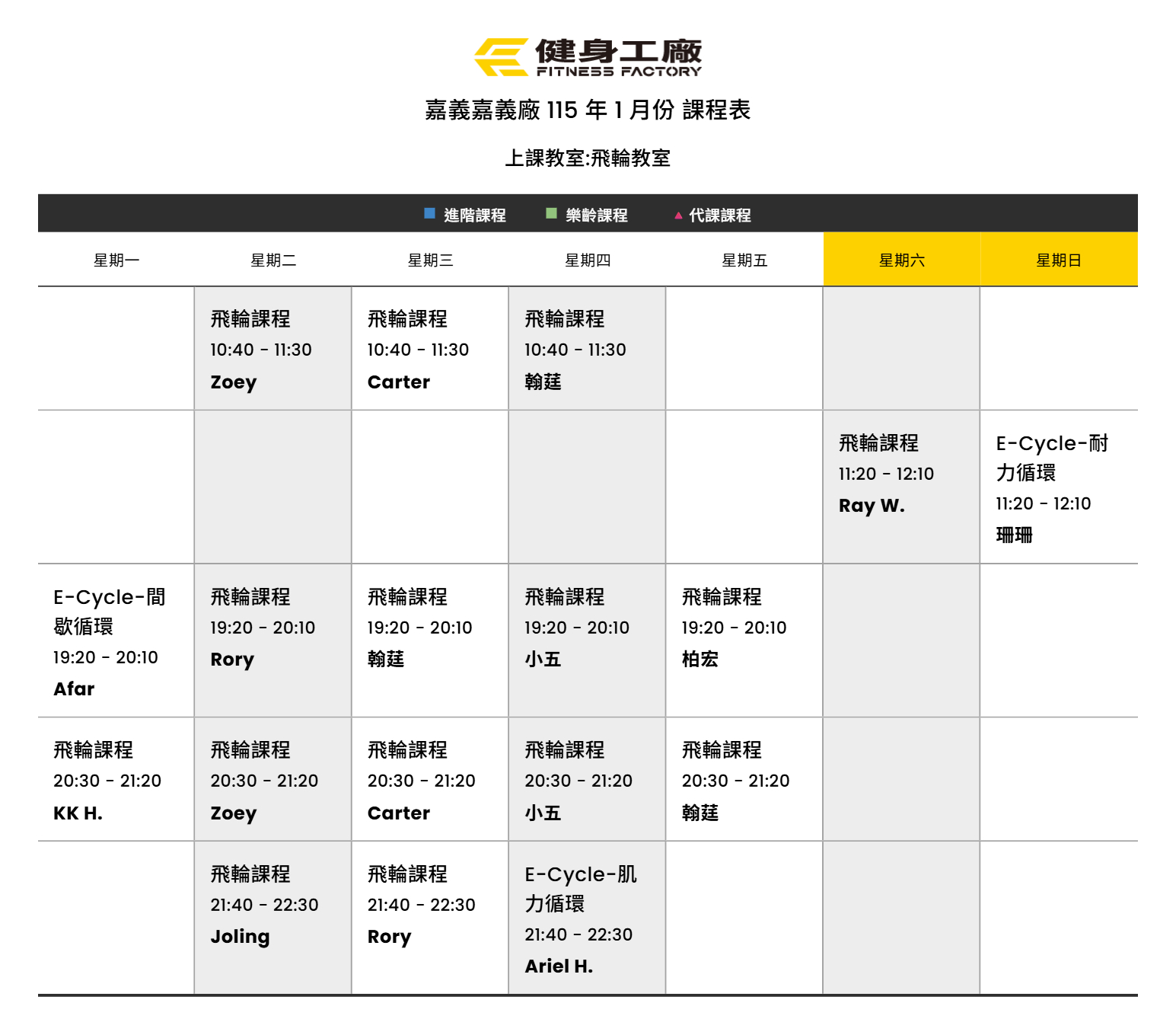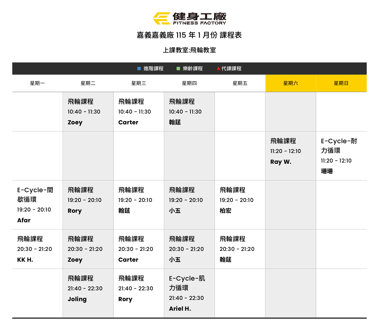 25Dec.2025【課表】嘉義廠-1月飛輪課表