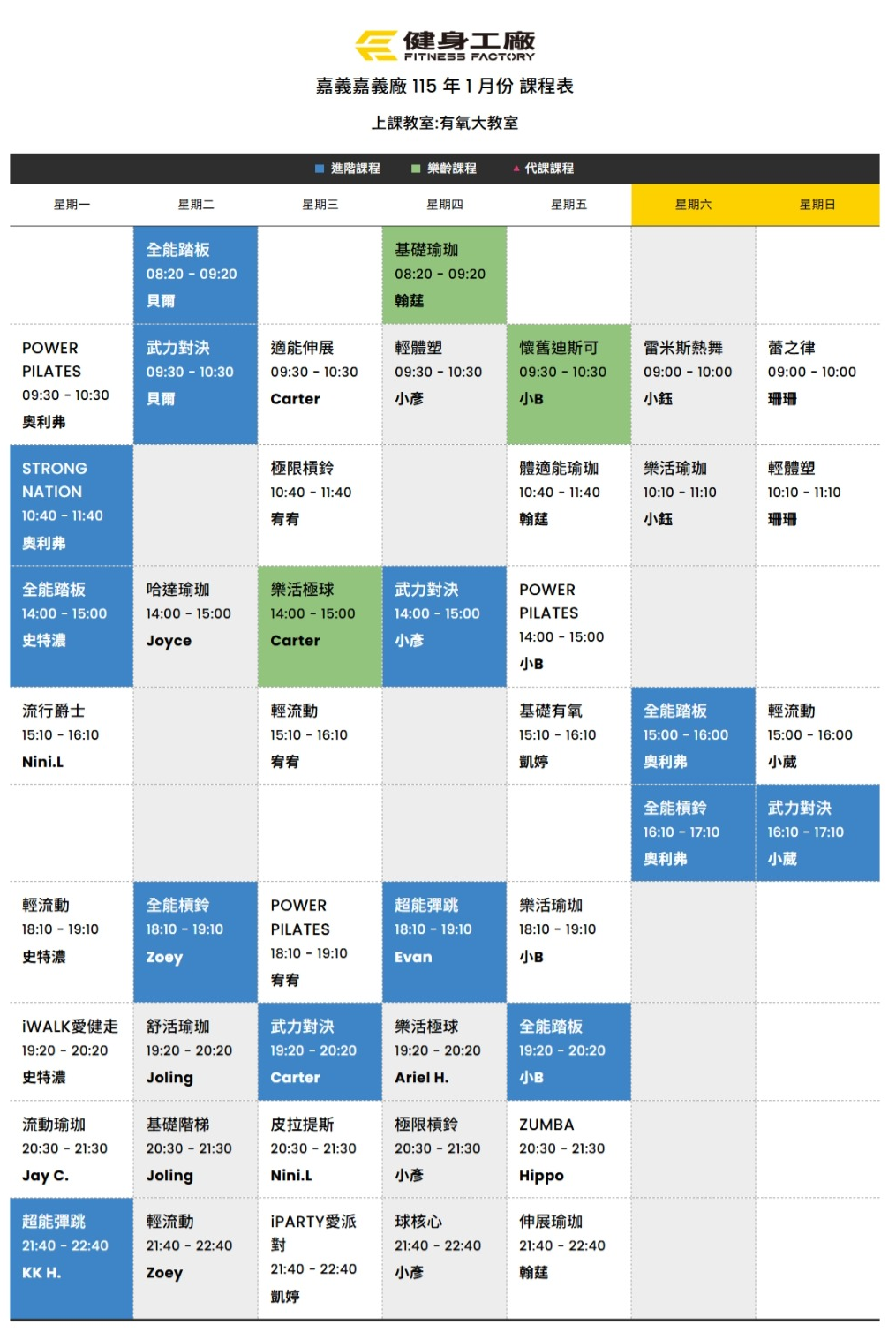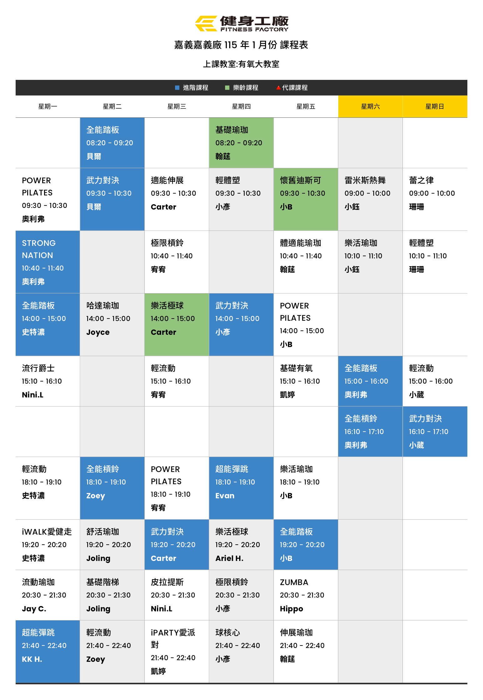 25Dec.2025【課表】嘉義廠-1月有氧課表