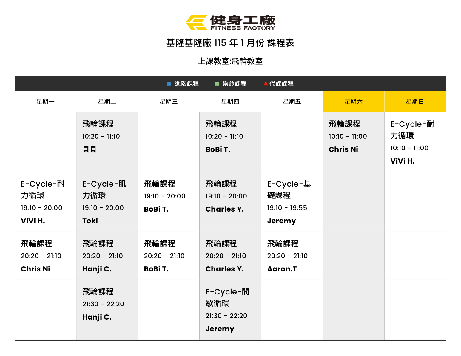 25Dec.2025【課表】基隆廠-1月飛輪課表