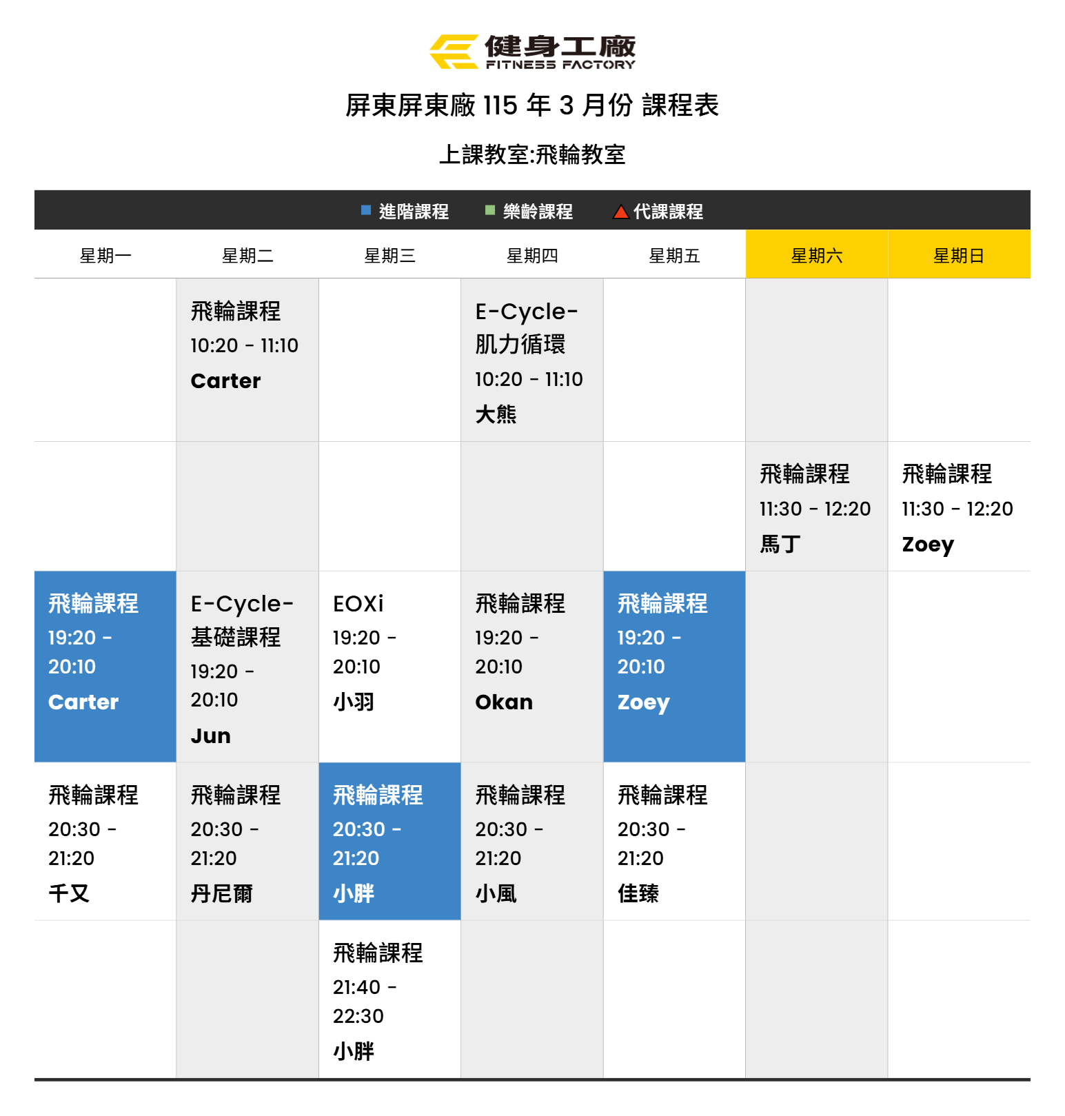 24Feb.2026【課表】屏東廠-3月飛輪課表
