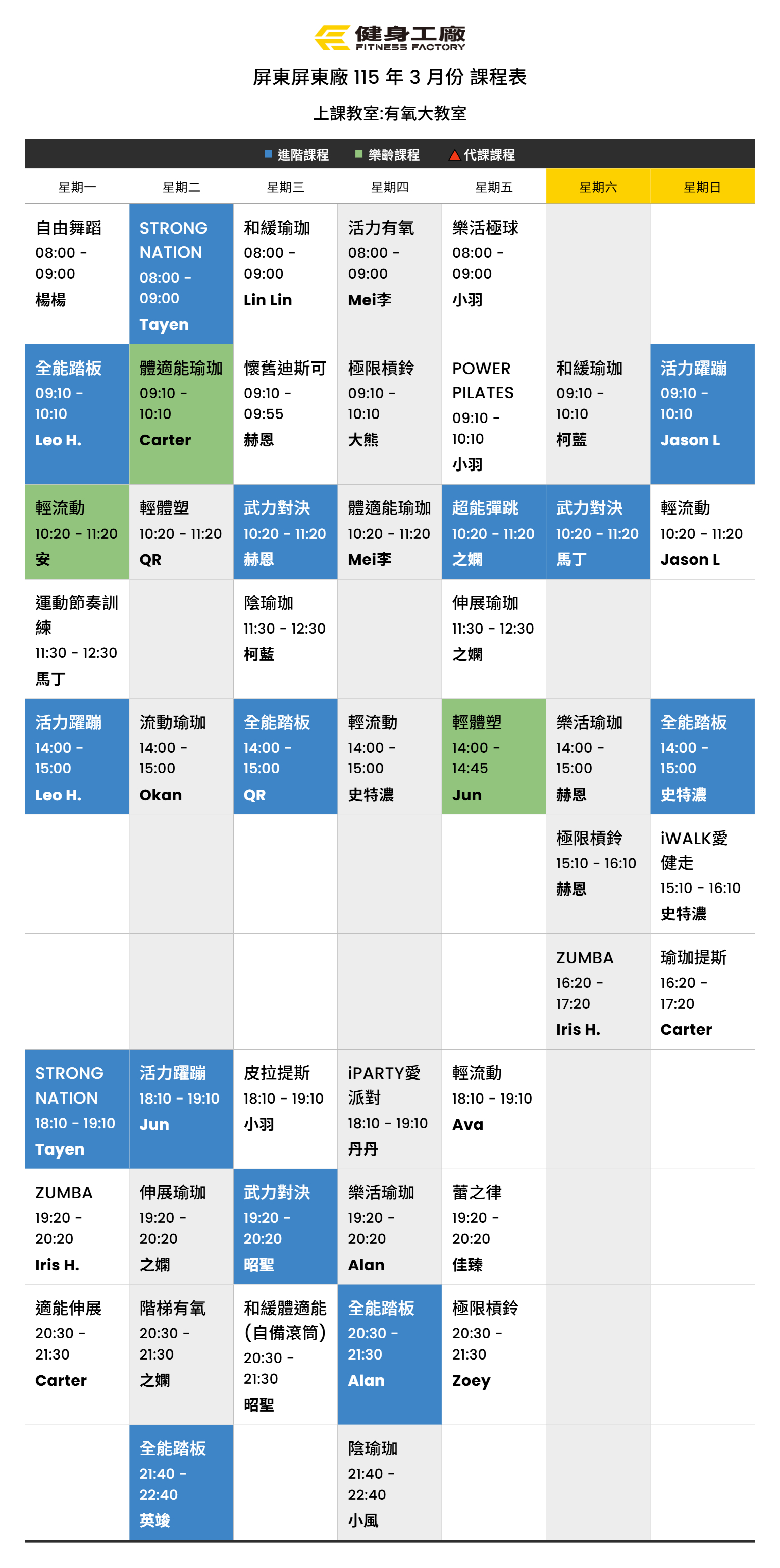 24Feb.2026【課表】屏東廠-3月有氧課表