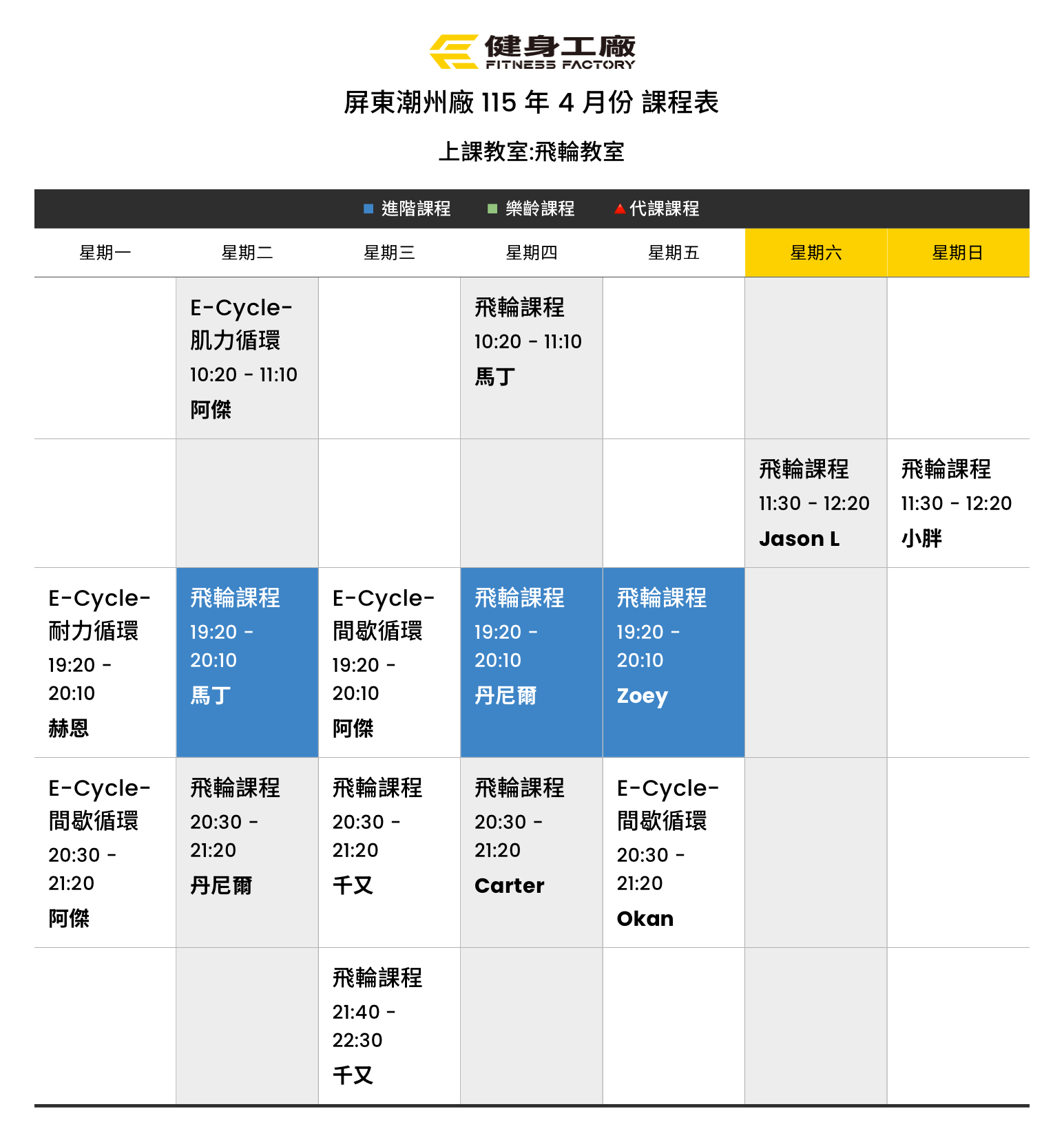 24Mar.2026【課表】潮州廠-4月飛輪課表